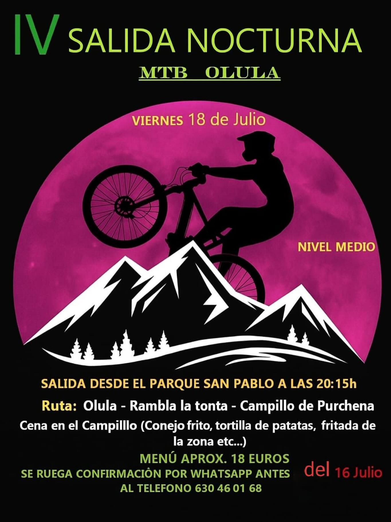 🚴♀️🚴♂️ On 18 July, the sixth edition of the night-time #MTB ride organised by the @mtb.olula club will take place.