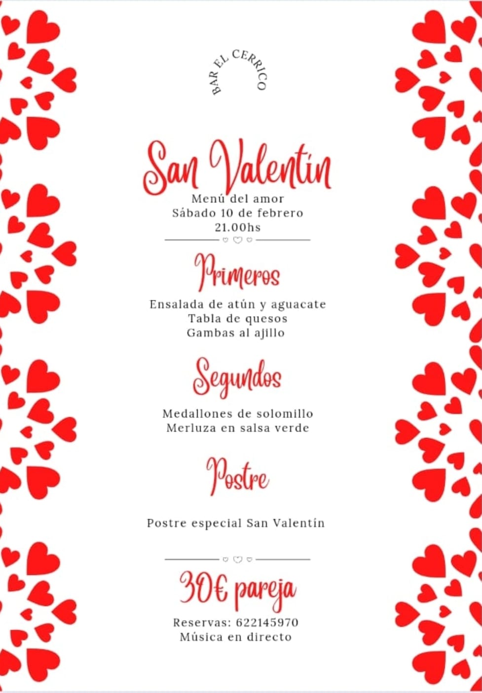 Valentine’s Day – Saturday 10 February – 21.00hs