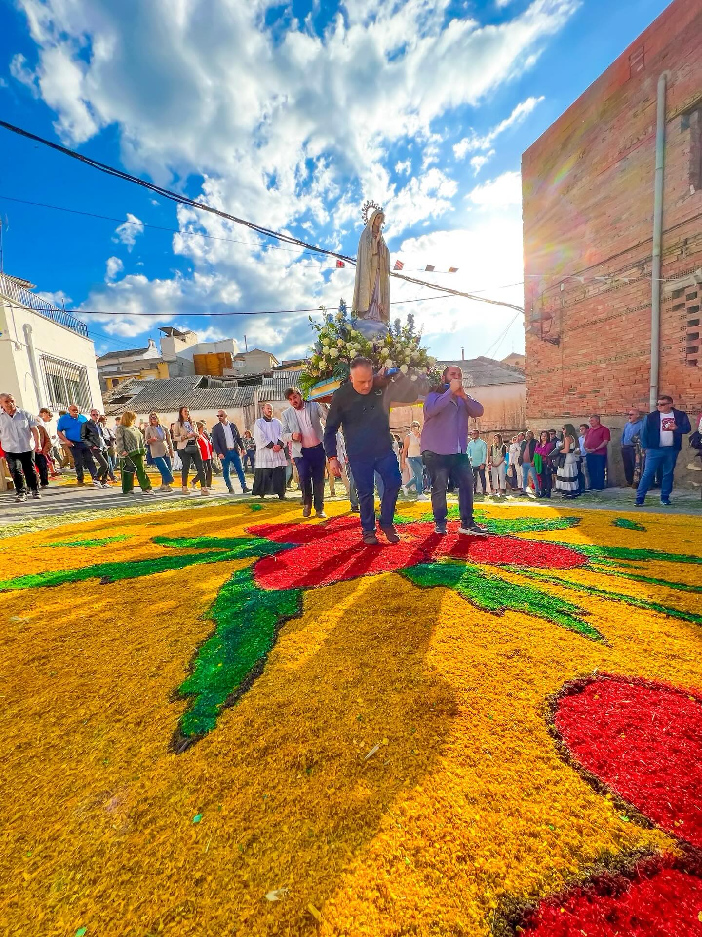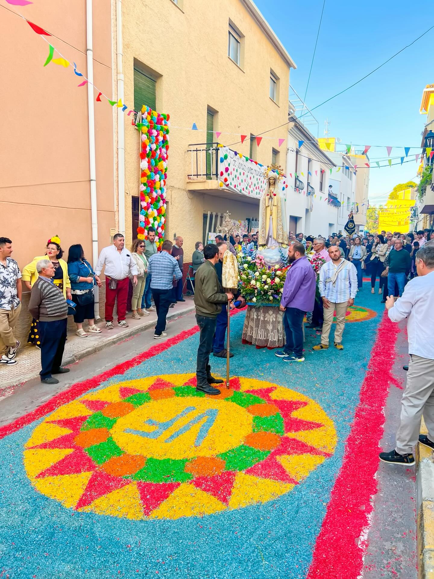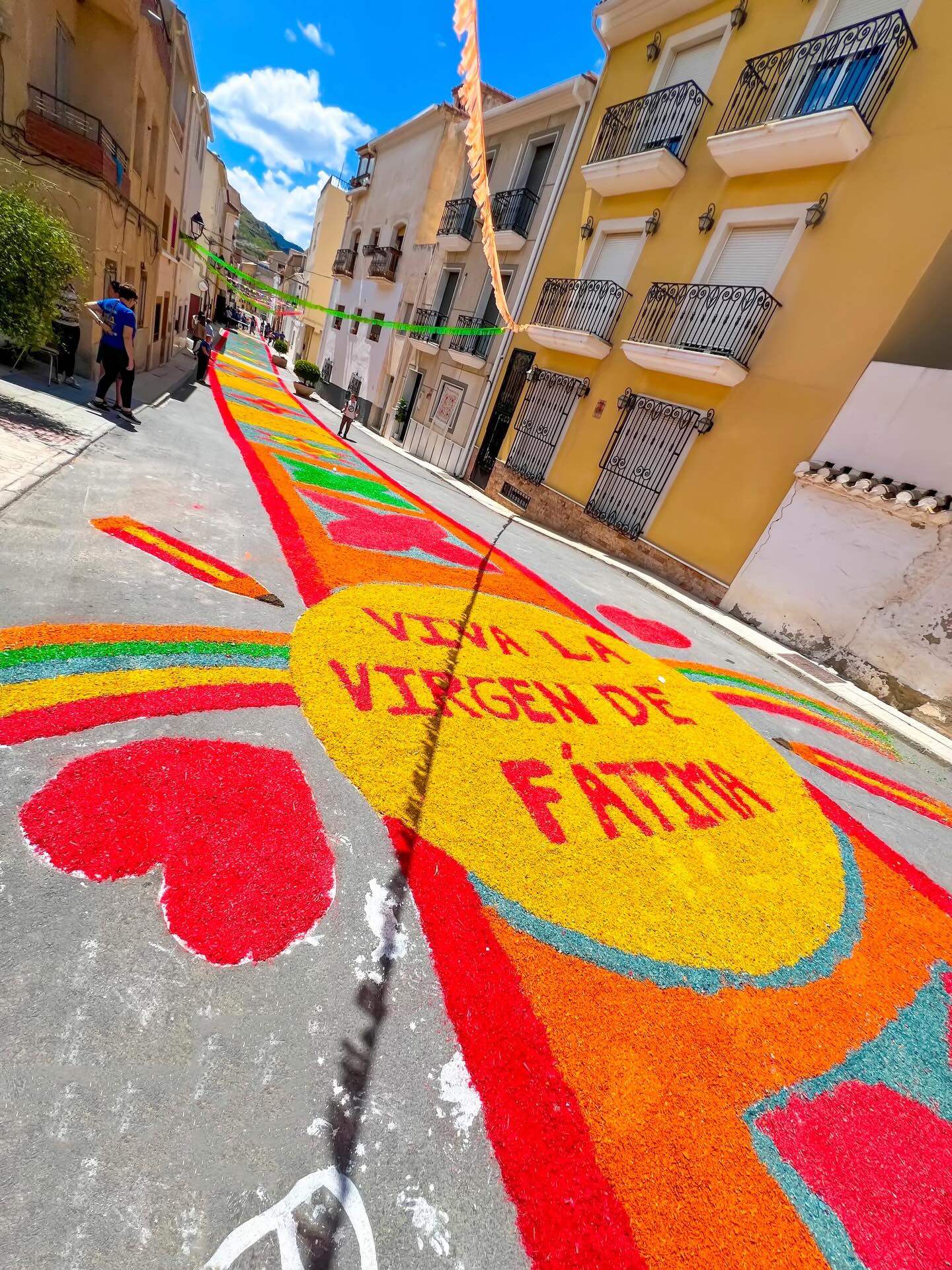 With these photos from last year, we look back on one of the most special celebrations in our town. The feast of Our Lady of Fátima is returning very soon… and with it, one of our most impressive traditions: the carpet of coloured sawdust that transforms our streets into a true work of ephemeral art 🎨🌸
