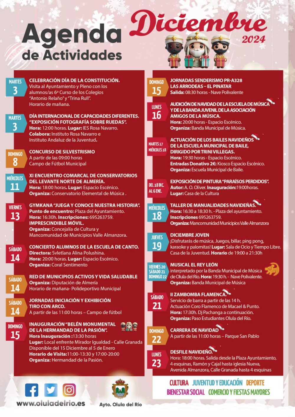 Olula del Río Town Hall programme of activities from 3 December 2024 to 5 January 2025.