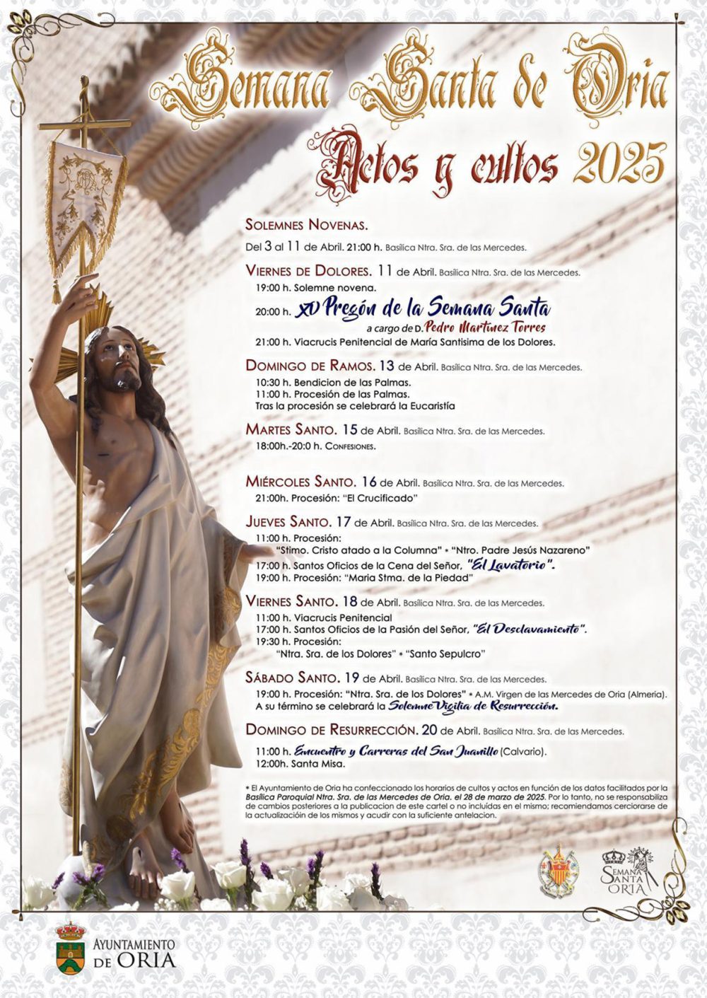 HOLY SATURDAY. 19th April. Basilica of Our Lady of Mercy. 19:00 h. Procession: ‘Our Lady of Sorrows’ * A.M. Virgen de las Mercedes de Oria (Almería).