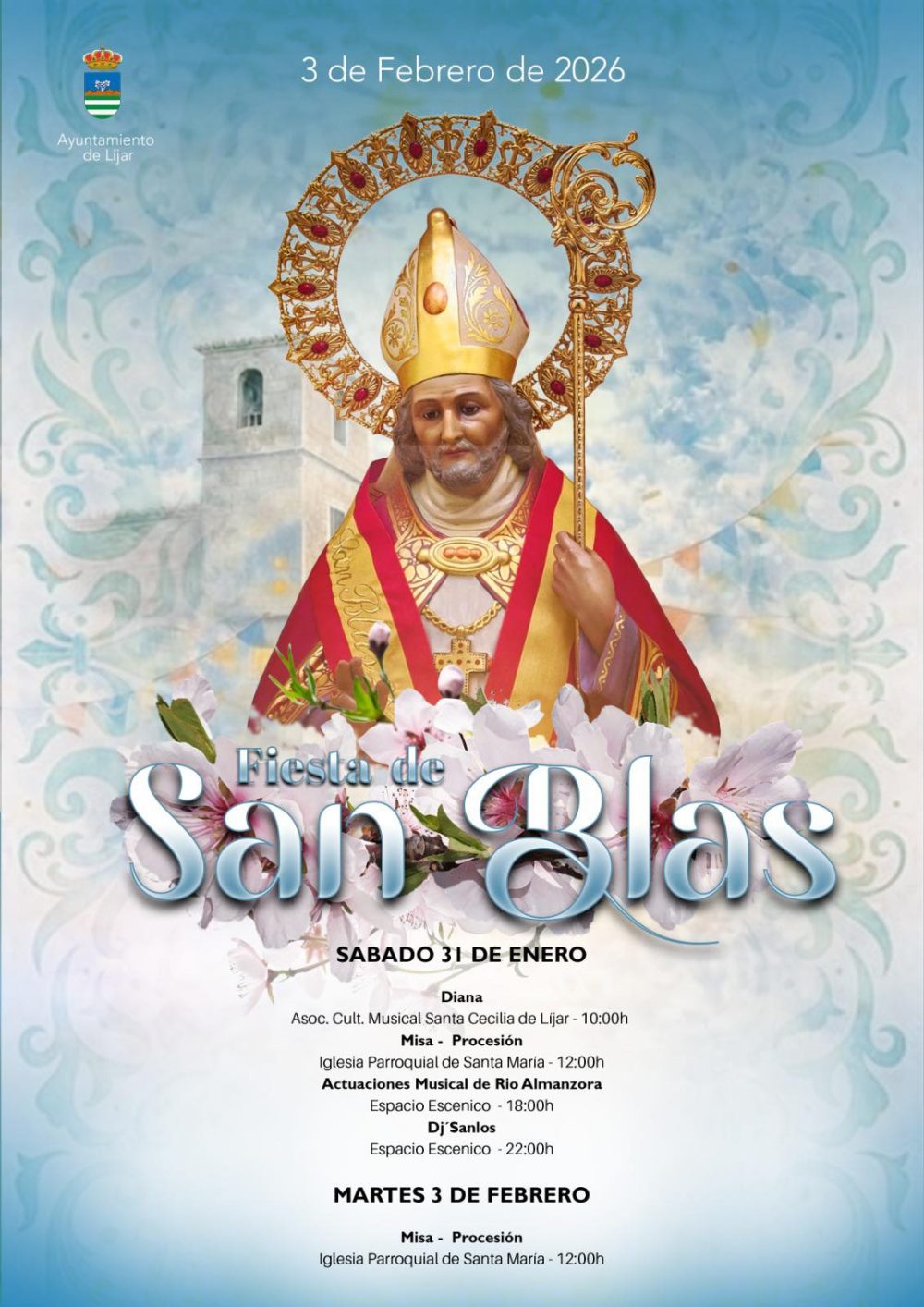 - On Saturday, 31 January, there will be a mass and procession in honour of our patron saint, accompanied by the Santa Cecilia de LÍJAR music association, and then that same afternoon there will be dancing and music in the performance space.