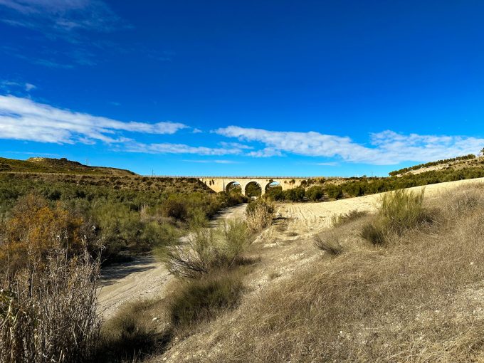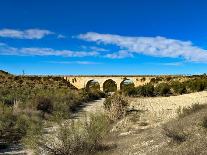 The Puente de los Tres Ojos (Bridge of the Three Eyes), named for its three arches, is a 19th-century construction built by the company that created the railway in the Almanzora region. It is located on the Rambla de Cela. The bridge blends into the landscape of the riverbed, surrounded by mountains and Mediterranean vegetation. From its surroundings, there are very attractive views of the valley and the village.