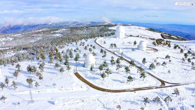 In the whole of Calar Alto there are 5 large domes, of which 4 are in the municipality of Bacares and the largest dome is in the municipality of Gergal, in addition to the buildings of the offices of the Observatory technicians.