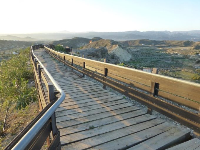 The viewpoint of Partaloa is a wooden construction of about 50 meters long in the form of a corridor that ends in a closed balcony. It is located on top of the Piedras del Castillo next to the Hermitage. It was built in 2006 and is considered the Balcon del Almanzora. From here we can have unbeatable panoramic views at a 360º angle. On the right we see the hamlet of Retamar, in front of the town of Partaloa with its meadow and on the left the hill where Algarrobo is located. In the background there is the Sierra de los Filabres where in winter you can see the Tetica de Bacares nevada.