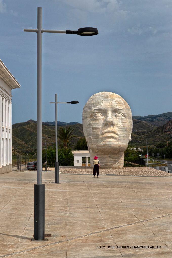The sculptural work that the artist Antonio López has designed to preside over the City of Culture in Olula del Río, the sculpture ‘Mujer del Almanzora’ is located next to the Casa Ibáñez museum and the ‘Pérez Siquier’ museum of photography.