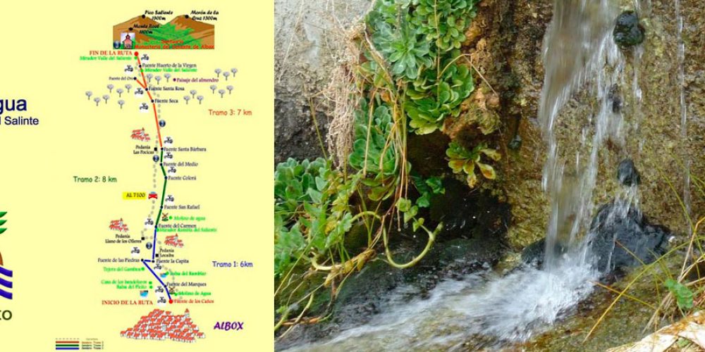 This route follows a path naturally marked by a Rambla , dotted with almond and orange groves and orchards that crosses an arid landscape interspersed with fertile districts, whose economy is based on agriculture and which owe their existence since centuries past to groundwater that emerges in the form of natural springs that mark the path.