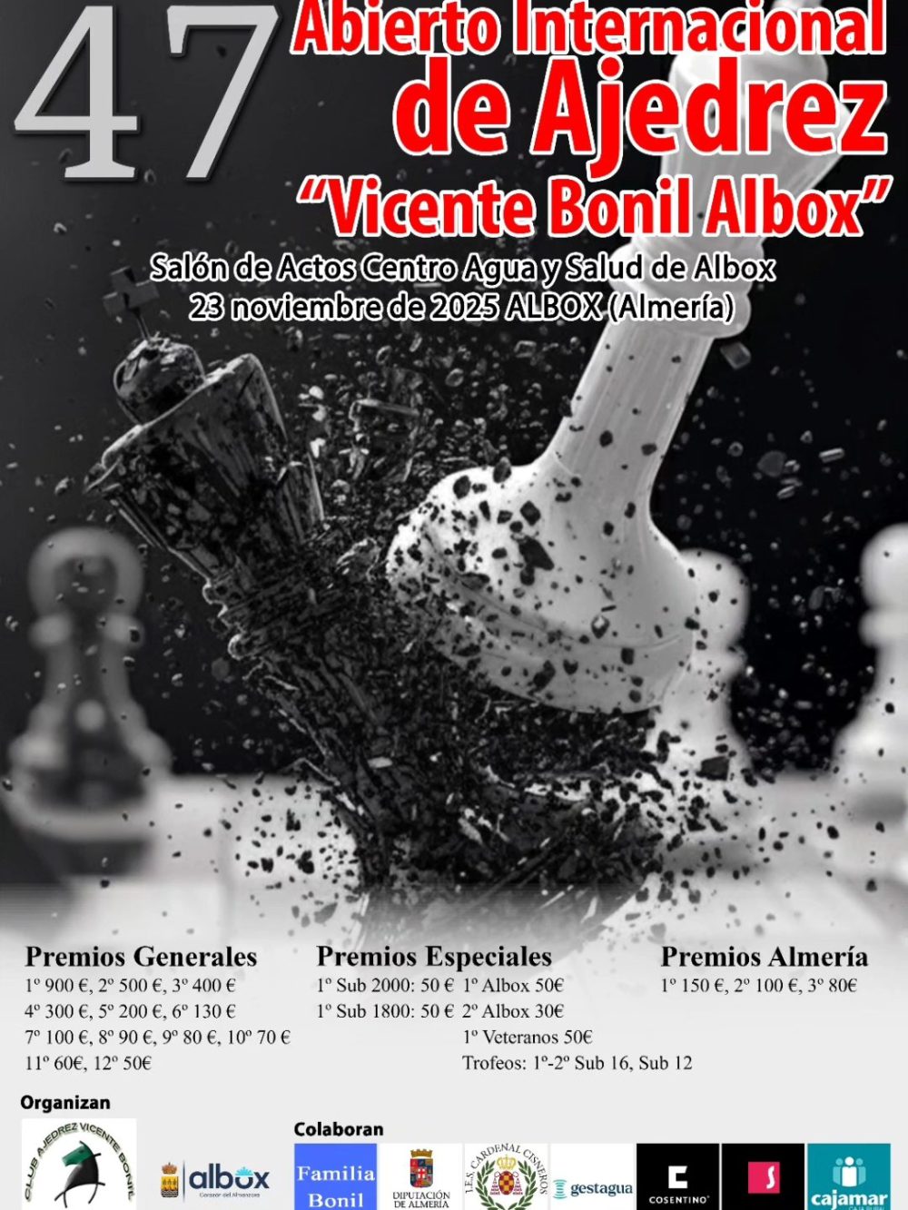 El próximo 23 de noviembre tendrá lugar la 47 edición del Abierto Internacional de Ajedrez VICENTE BONIL ALBOX