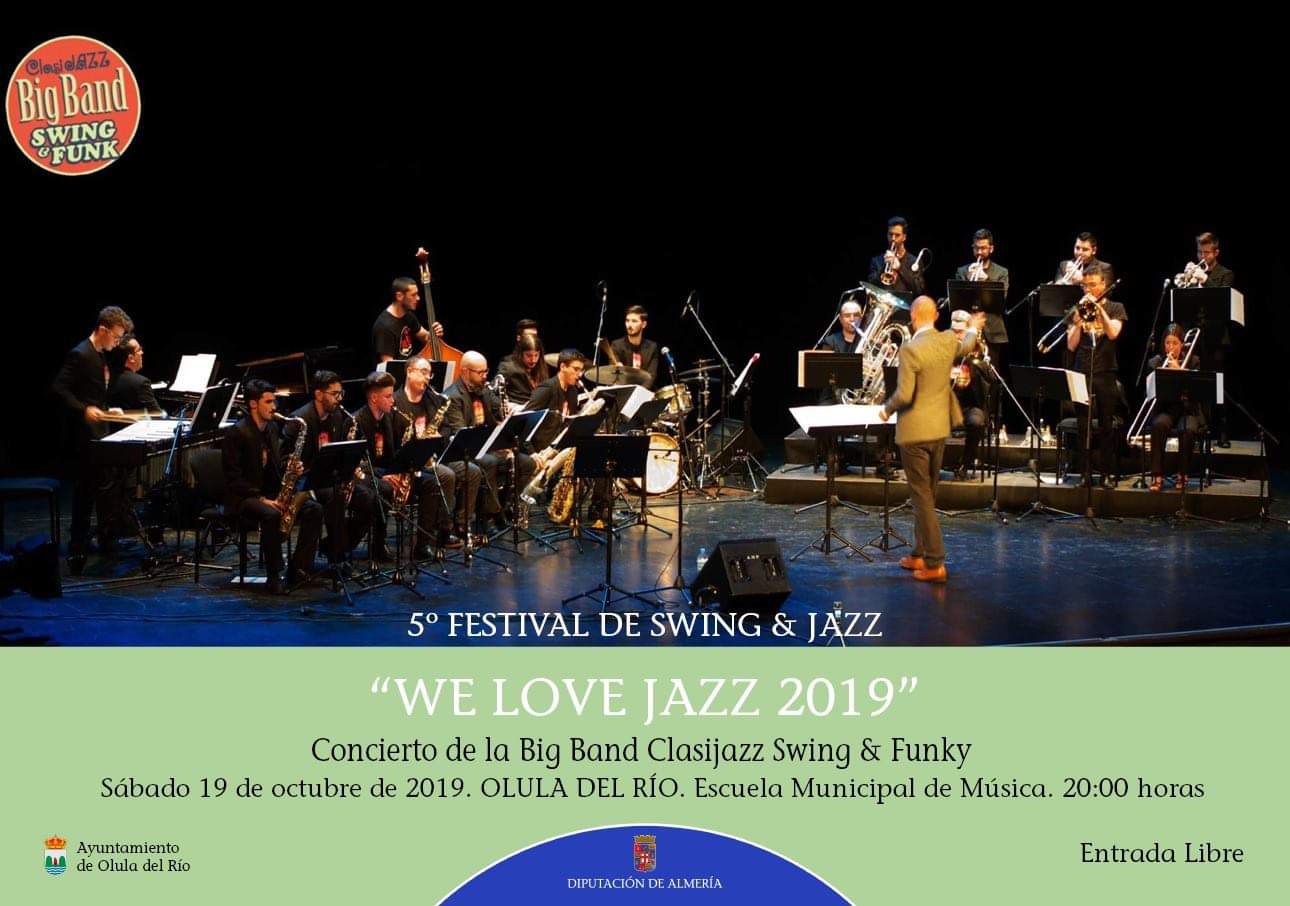 19 octubre 2019 a las 20h en la Escuela Municipal de Musica de Olula del Río, concierto de la Big Bang Clasijazz Swing & Funky.