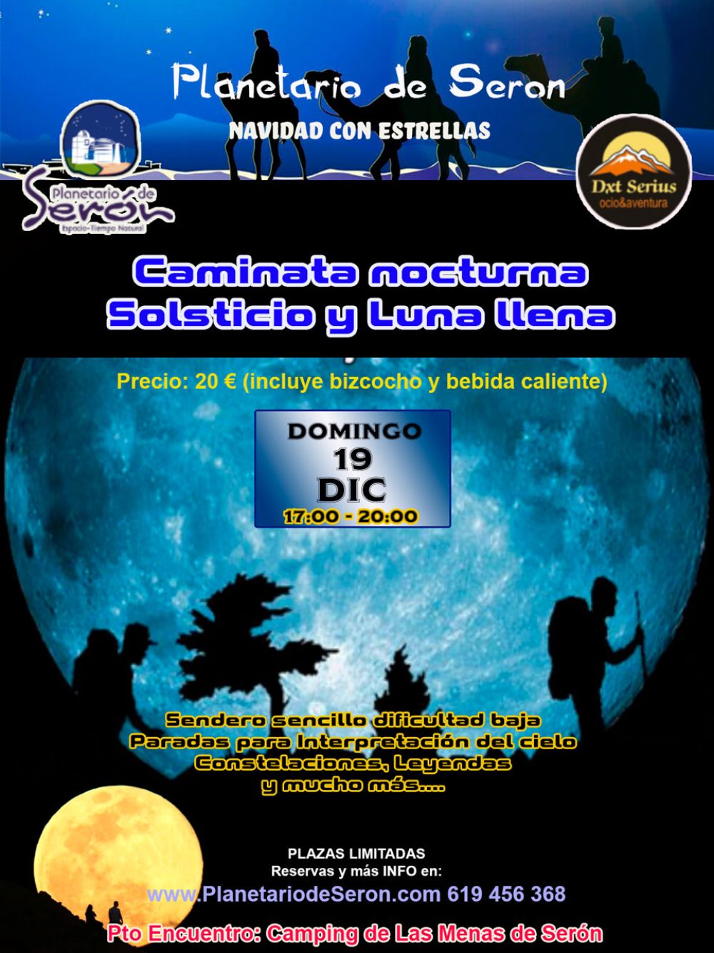 Durante el recorrido el grupo se parará para poder observar el cielo nocturno y conocer sus historias, el significado del solsticio que este año nos pilla con esta hermosa luna llena