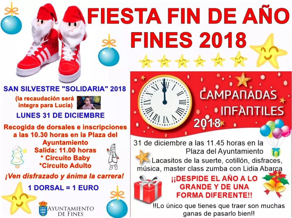 31 diciembre 2018. Campanadas Infantiles 11:45h en la plaza del Ayuntamiento de Fines.