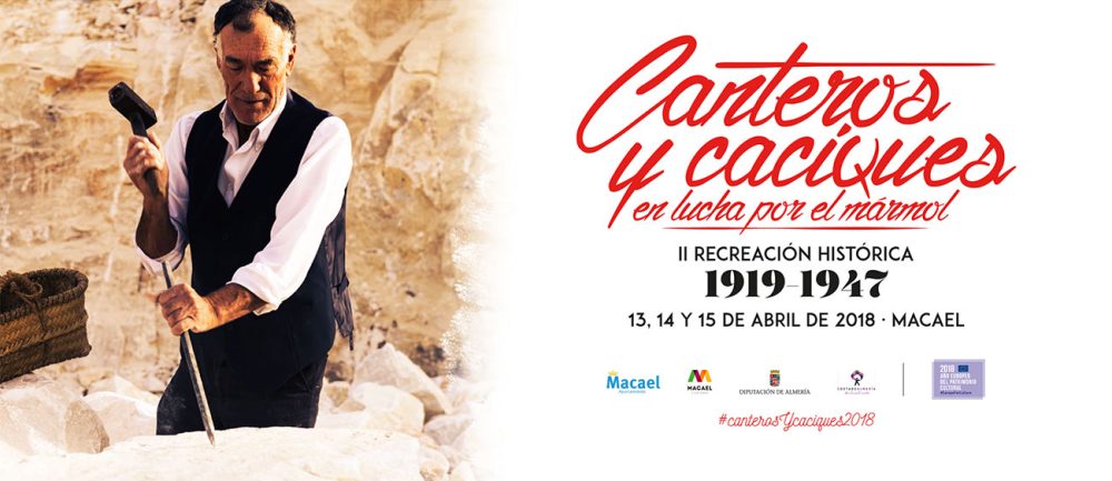 El 13,14 y 15 de Abril 2018, Macael se vestirá de época, volviendo al periodo comprendido entre 1919 y 1947. Nos encontraremos con canteros, arrieros, carreteros, dueños de canteras, fragüeros, chambilleros, amoladoras, lavanderas y otros personajes típicos de este tiempo dentro de un espacio lúdico caracterizado con los edificios y escenarios más representativos de ese periodo. En ellos la representación se mezclará con el público asistente, que tendrá la oportunidad de degustar tapas basadas en la gastronomía tradicional, bailar al compás de la música de la época (Charleston, pasodobles, Mazurca), contemplar demostraciones de labores de cantería, artesanía y escultura, cómo bajaban el mármol en carretas de bueyes, comprar productos típicos, escuchar cantes típicos de la época como las tarantas y los fandangos de Almería, y celebrar que el pueblo de Macael recupera sus canteras con barriles de vino, como ocurrió en 1947.