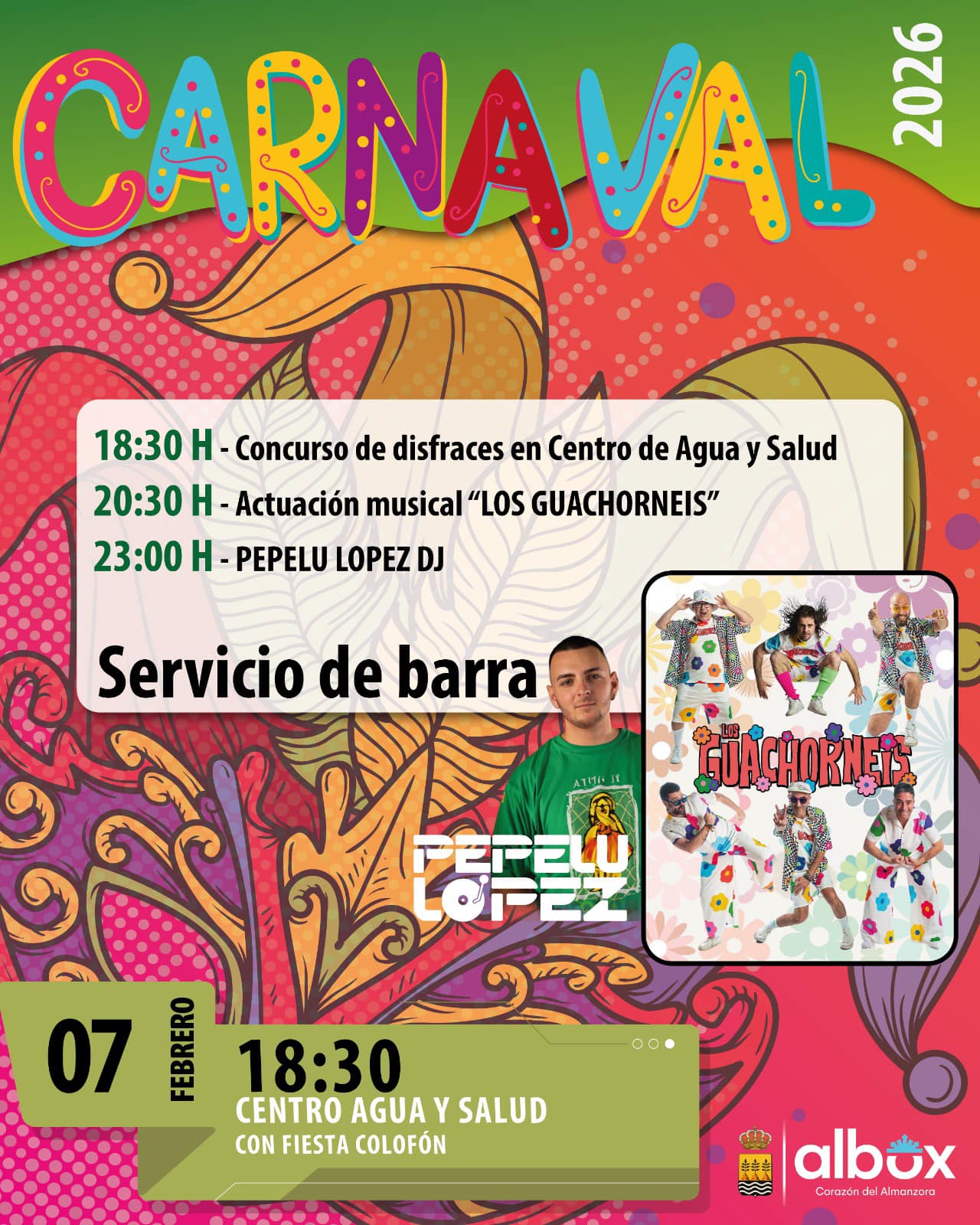 Os esperamos para disfrutar juntos de una gran tarde-noche de Carnaval, ¡con mucha música, diversión y buen ambiente! 🥳✨