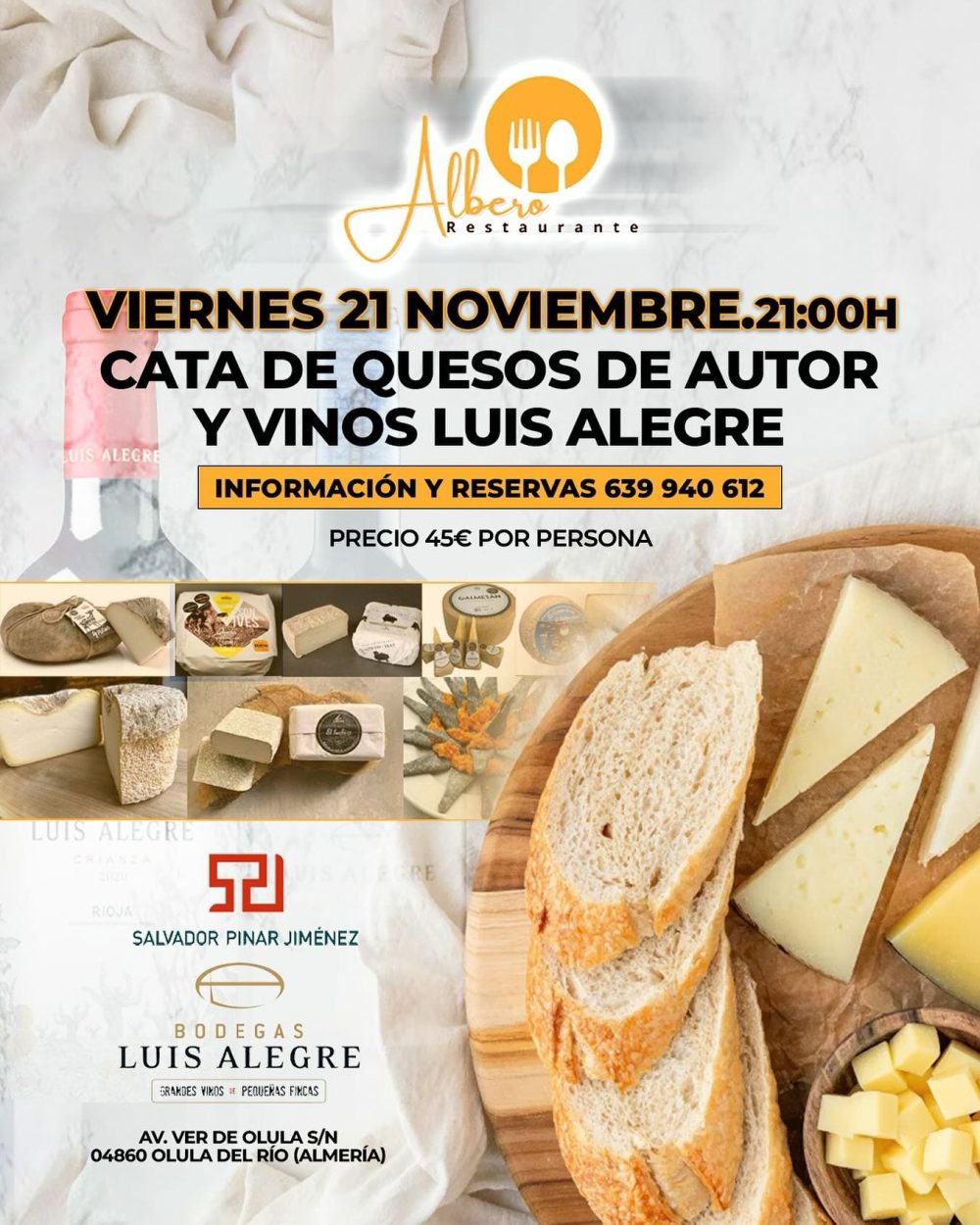 Viernes 21 de noviembre de 2025 a las 21h en Restaurante Albero de Olula del Rio (Almería)