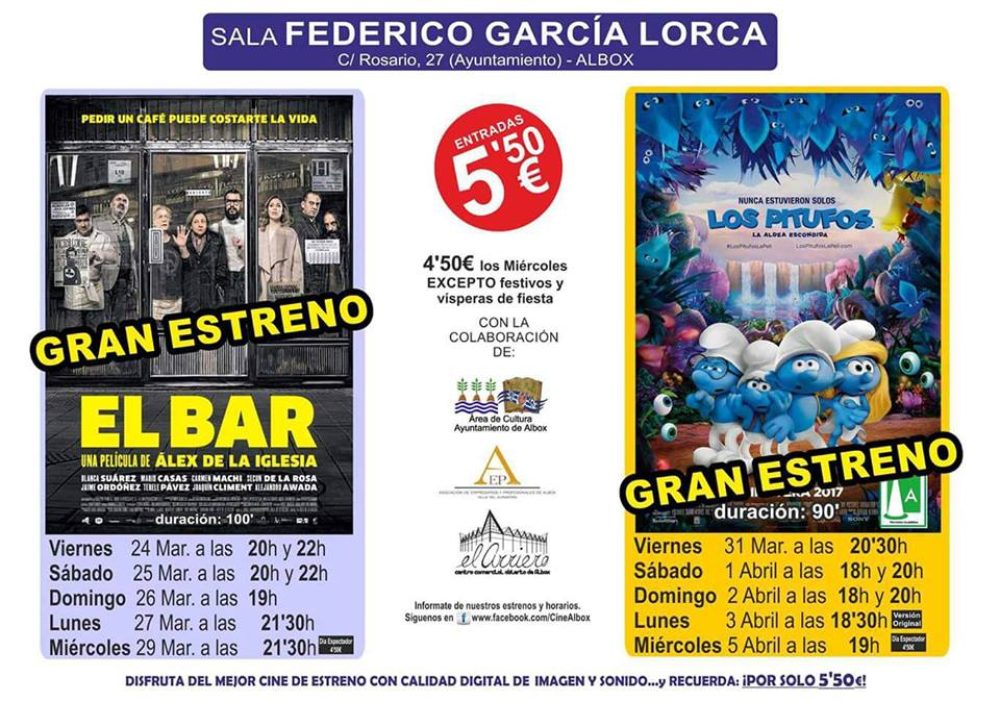 ¿Has visto ya el último éxito de Álex de la Iglesia? ¿No? ¡Lo tienes muy cerca! ‘El Bar’ se proyectará con imagen y sonido digital en el cine de Albox hasta el miércoles.