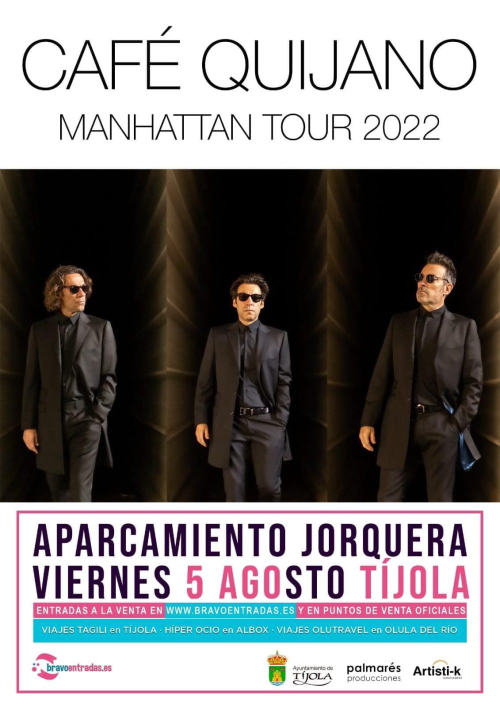 Gran concierto en #Tíjola el próximo 5 de agosto “Café Quijano” Manhattan Tour 2022 entradas a la venta en www.bravoentradas.es y en puntos de venta oficiales.
