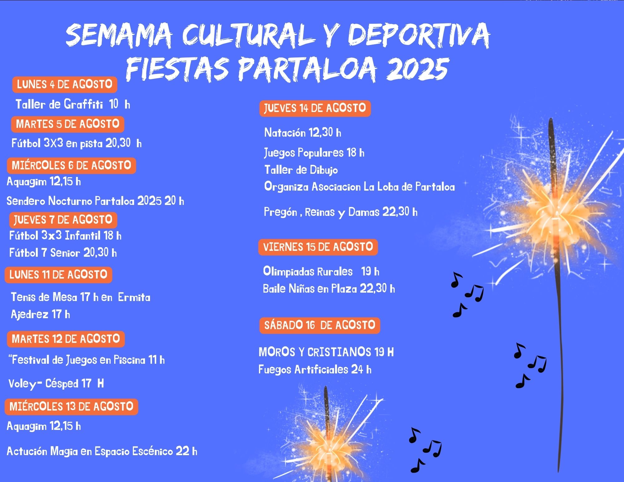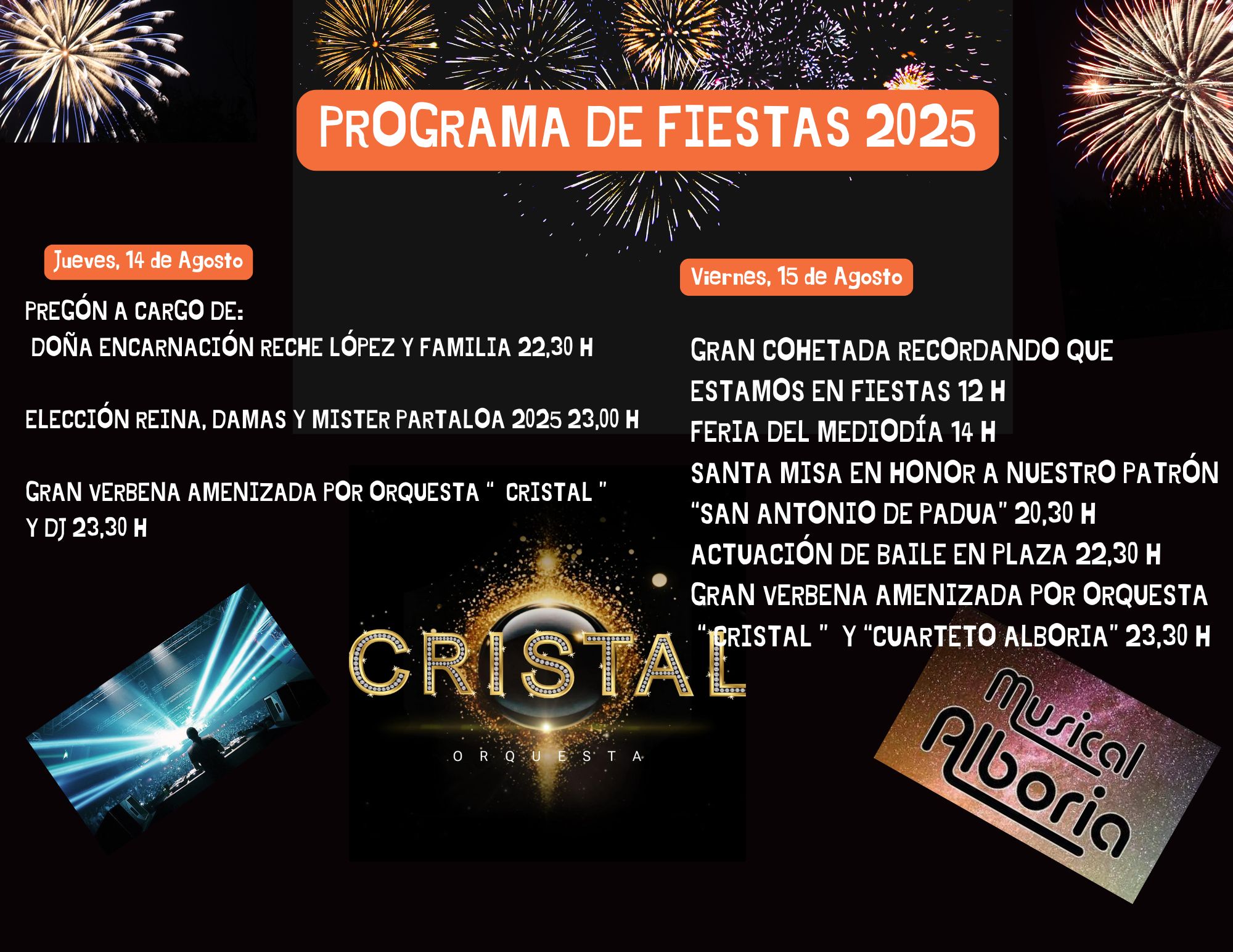 Del 14 al 16 de agosto de 2025, fiestas de Partaloa en honor a San Antonio de Padua.