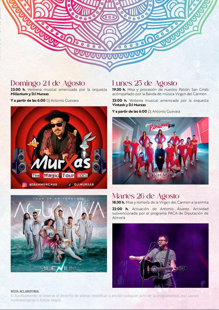 Carrera de carromatos, verbenas musicales, procesión de San Gines, etc.