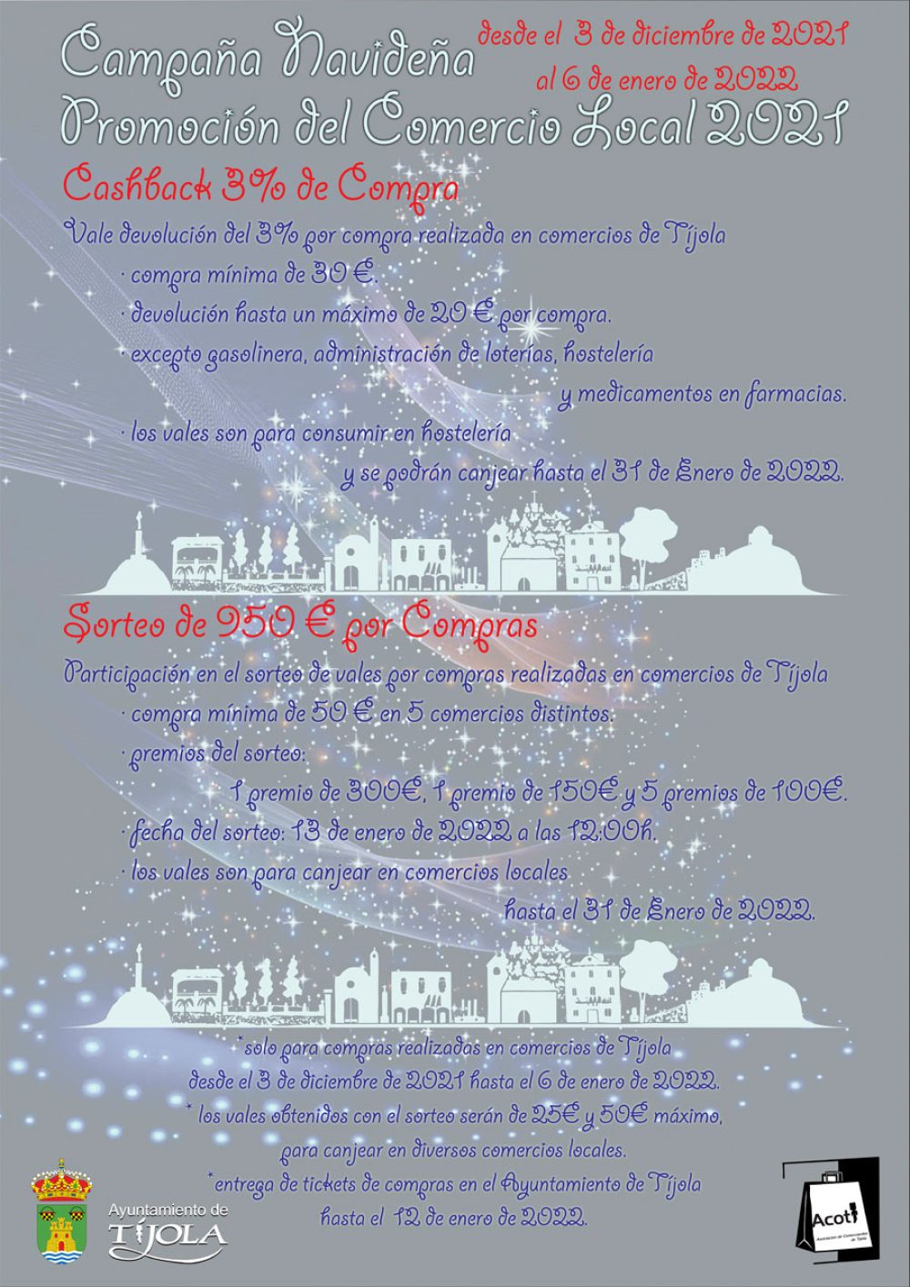 Fecha del sorteo: 13 de enero de 2022 a las 12:00h: los vales son para canjear en comercios locales hasta el 31 de Enero de 2022.