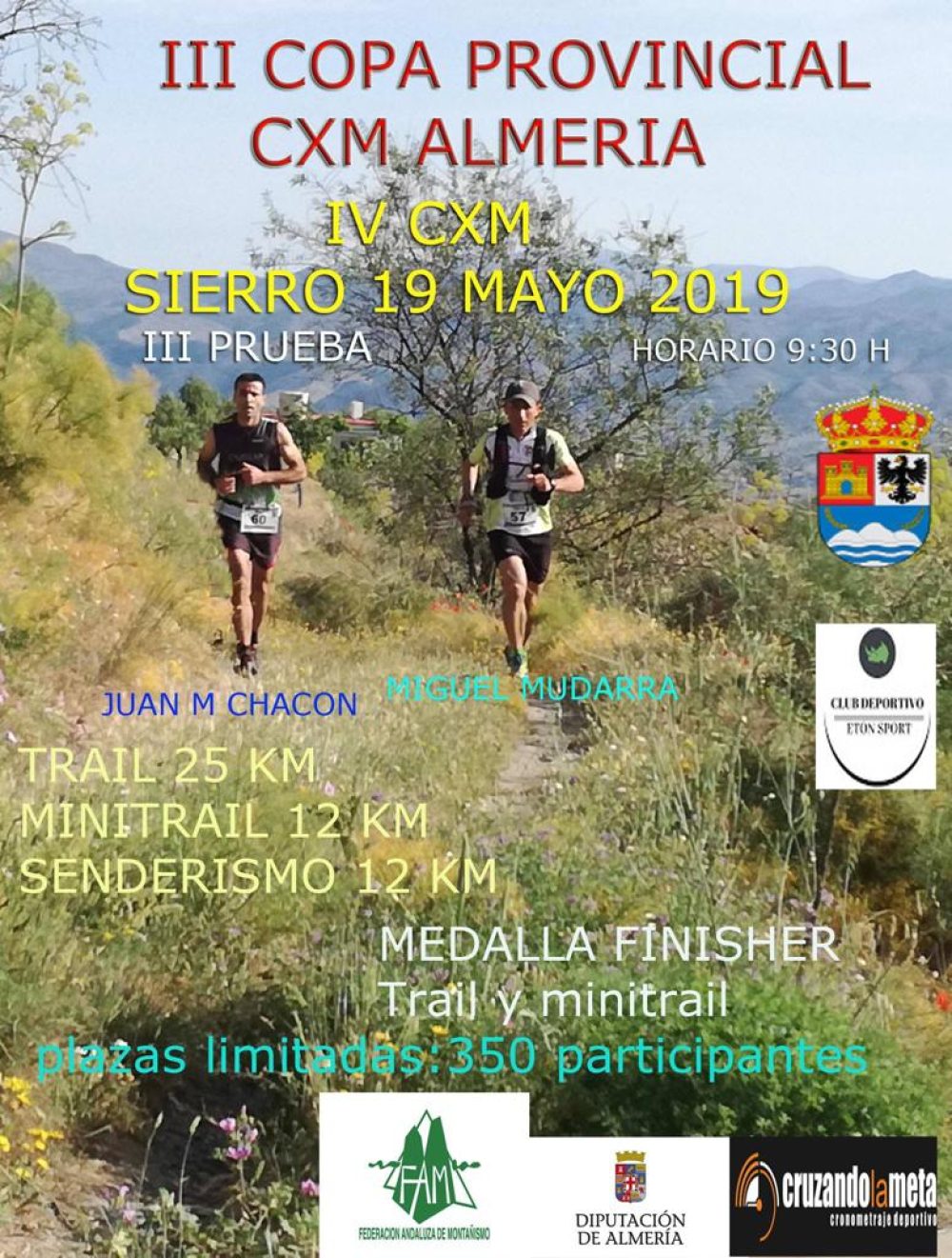 19 Mayo 2019. Horario: 9:30h. III Prueba. Trail 25km. Minitrail 12km. Senderismo 12km.