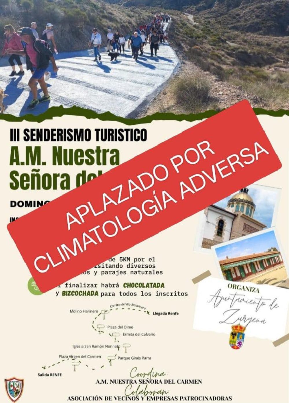 We inform you that, due to the rain and wind forecast for this Sunday, February 8, the AM Tourist Hiking Route “Nuestra Señora del Carmen” has been POSTPONED. ![]()