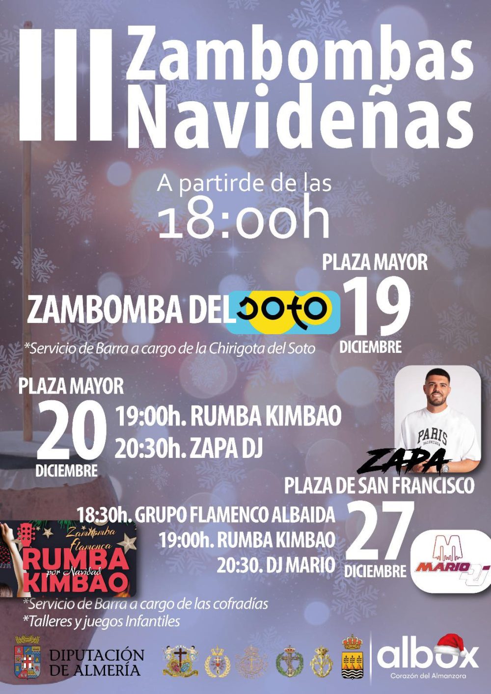 🆕 Este año con una novedad muy importante, pues en lugar de 2, serán 3 las zambombas que nos hagan disfrutar del ambiente navideño y del verdadero sentido de estas fiestas, con la “Zambomba del Soto” que se estrenará: