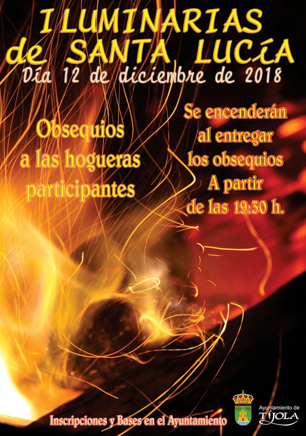 El próximo día 12 de diciembre en la víspera al día de Santa Lucia, a partir de las 19:30h, tendrá lugar las tradicionales luminarias por diferentes zonas de Tíjola