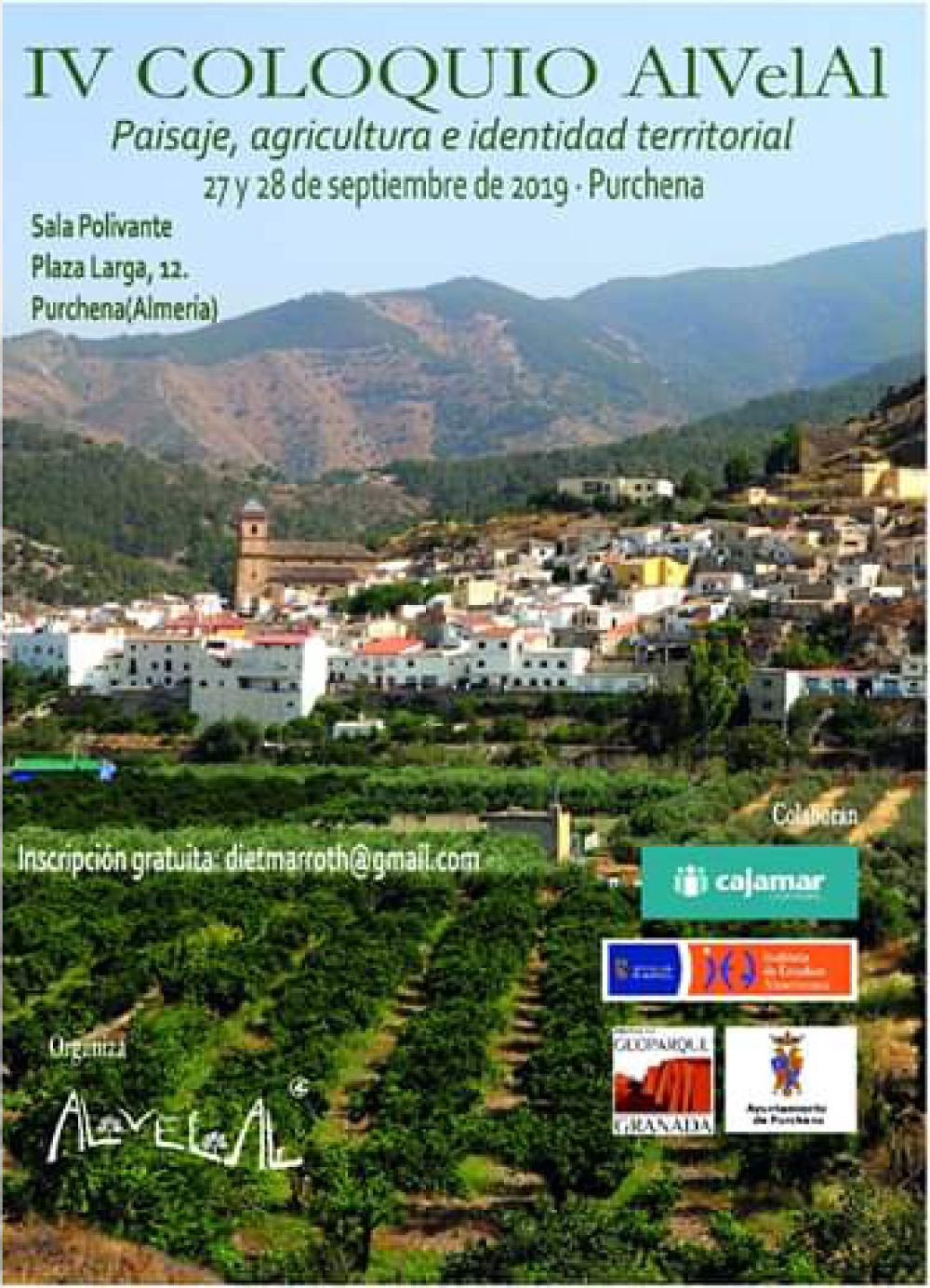 IV Coloquio AlVelAl sobre»Paisaje, agricultura e identidad territorial» que se celebrará los días 27 y 28 de septiembre en Purchena (Almería).