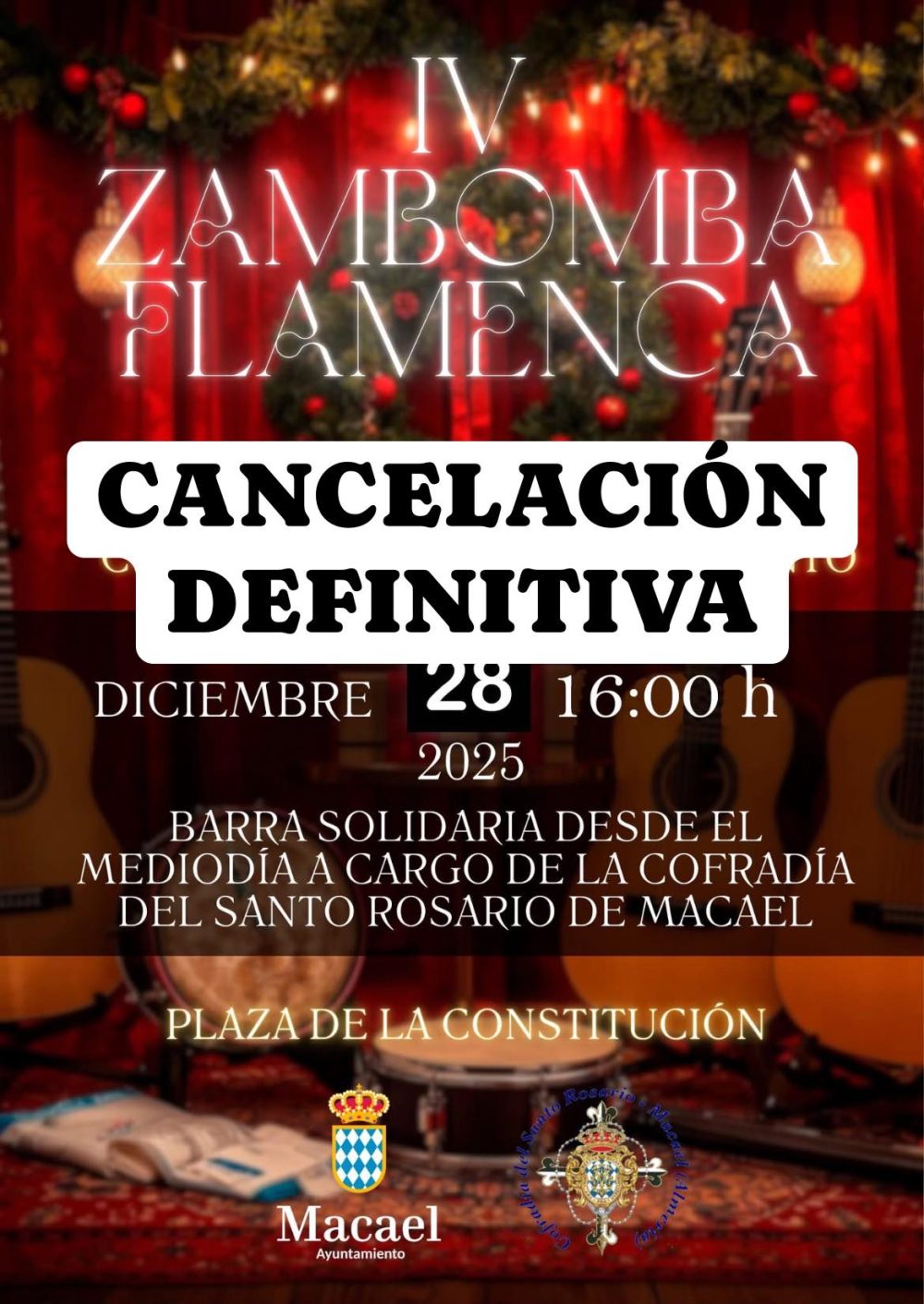 CANCELADA LA ZAMBOMBA FLAMENCA 2025 POR PREVISIÓN DE LLUVIA.