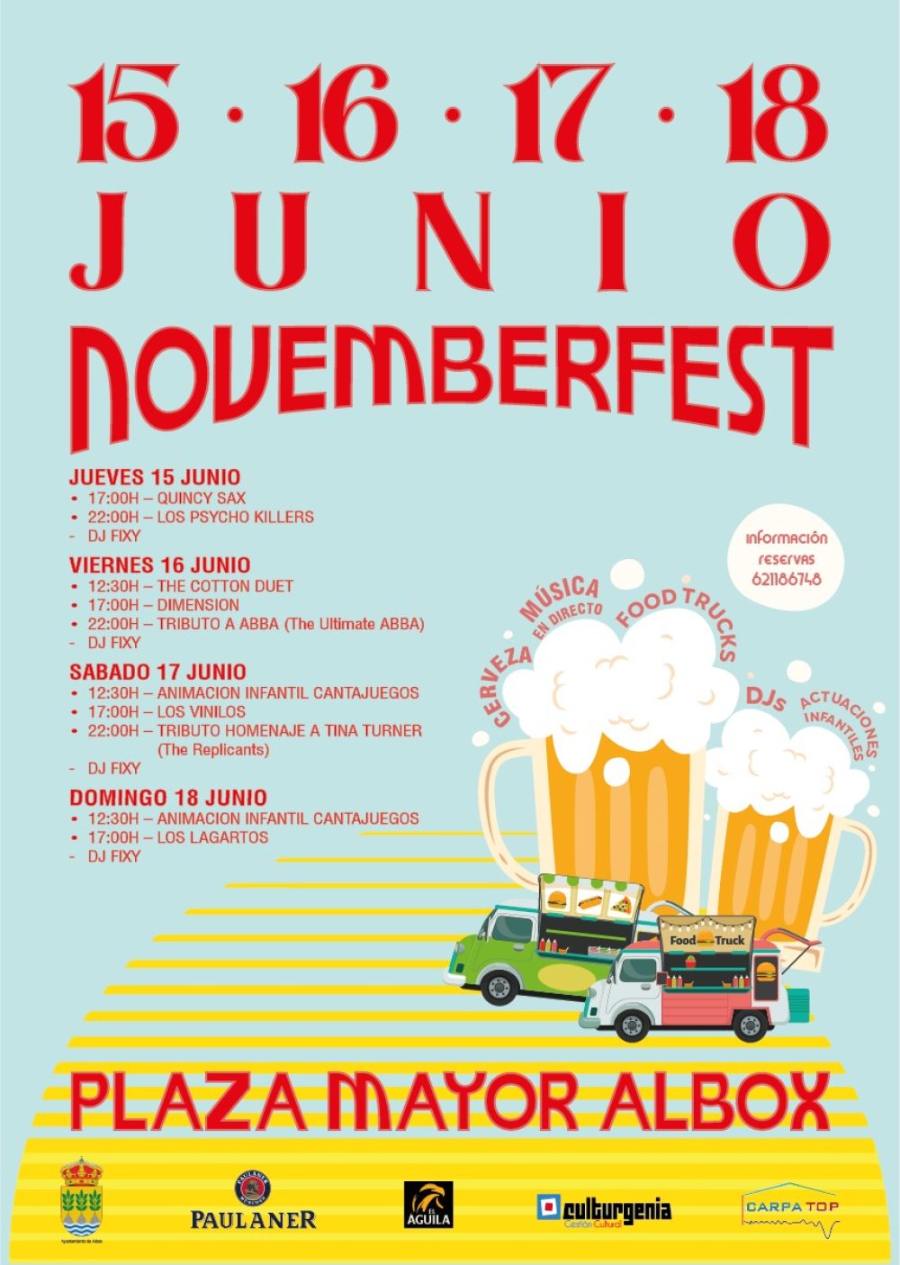 15, 16, 17 y 18 de junio de 2023 en la Plaza Mayor de Albox (Almeria). Vuelve el gran Evento de Musica, Gastronomía y Cervezas del Mundo… Vuelve NOVEMBERFEST!!!