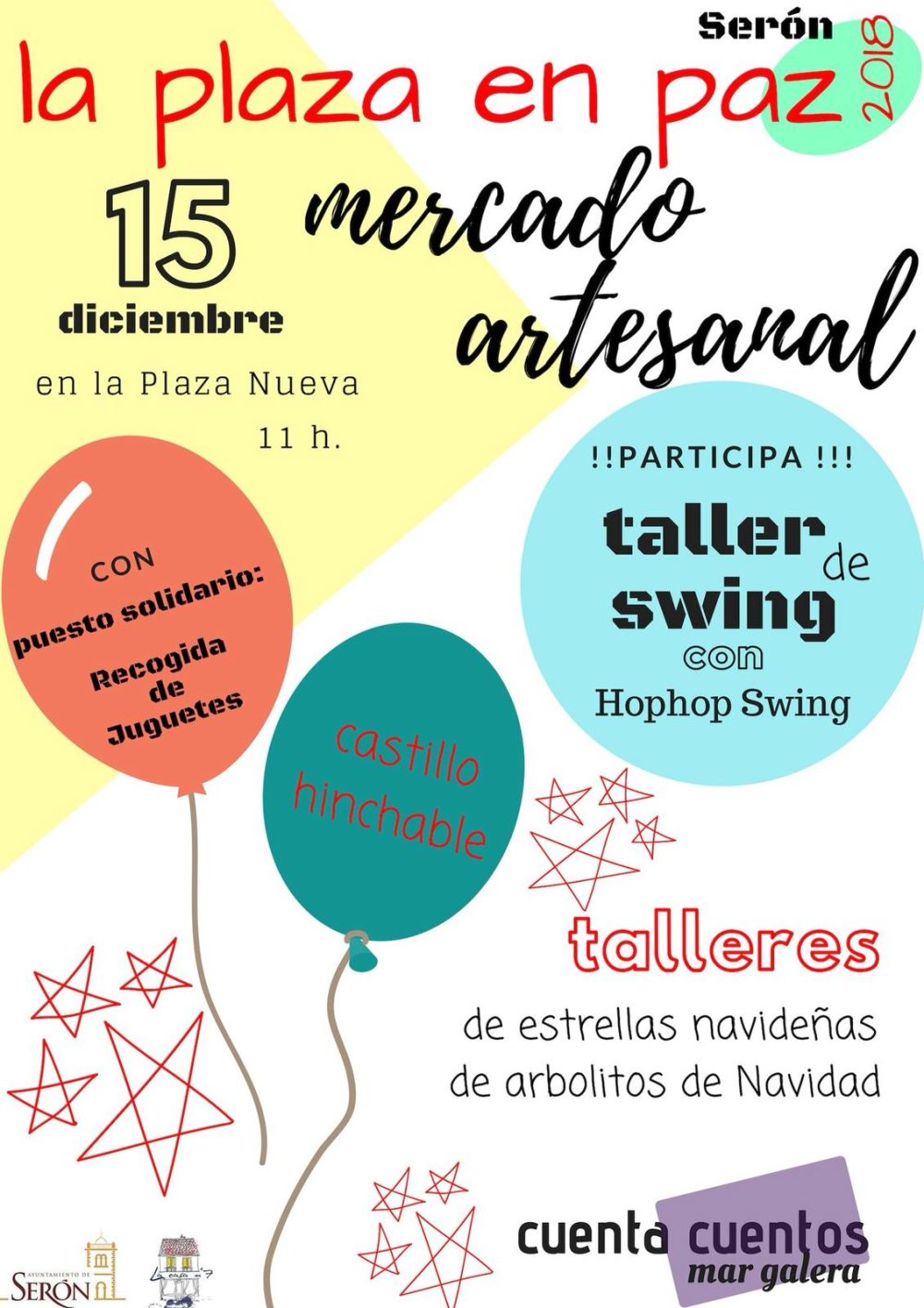 15 diciembre 2018. Plaza Nueva de Serón 11h. Mercado Artesanal. Castillo hichable. Talleres. Cuenta cuentos.