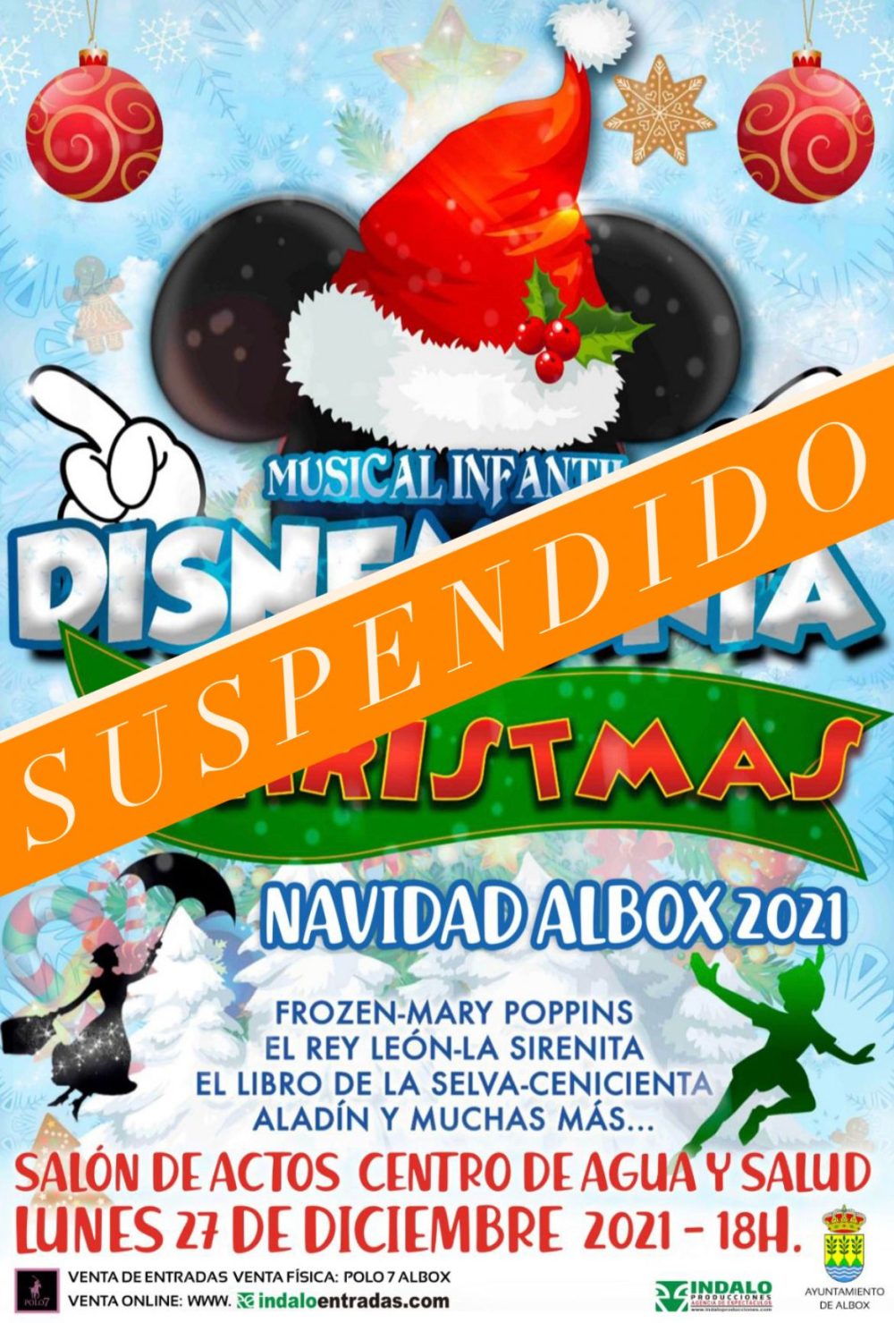 Lunes 27 de diciembre 2021 a las 18h, Musical Infantil Disneymania in Christmas en el salón de actos del Centro de Agua y Salud de Albox (Almería).