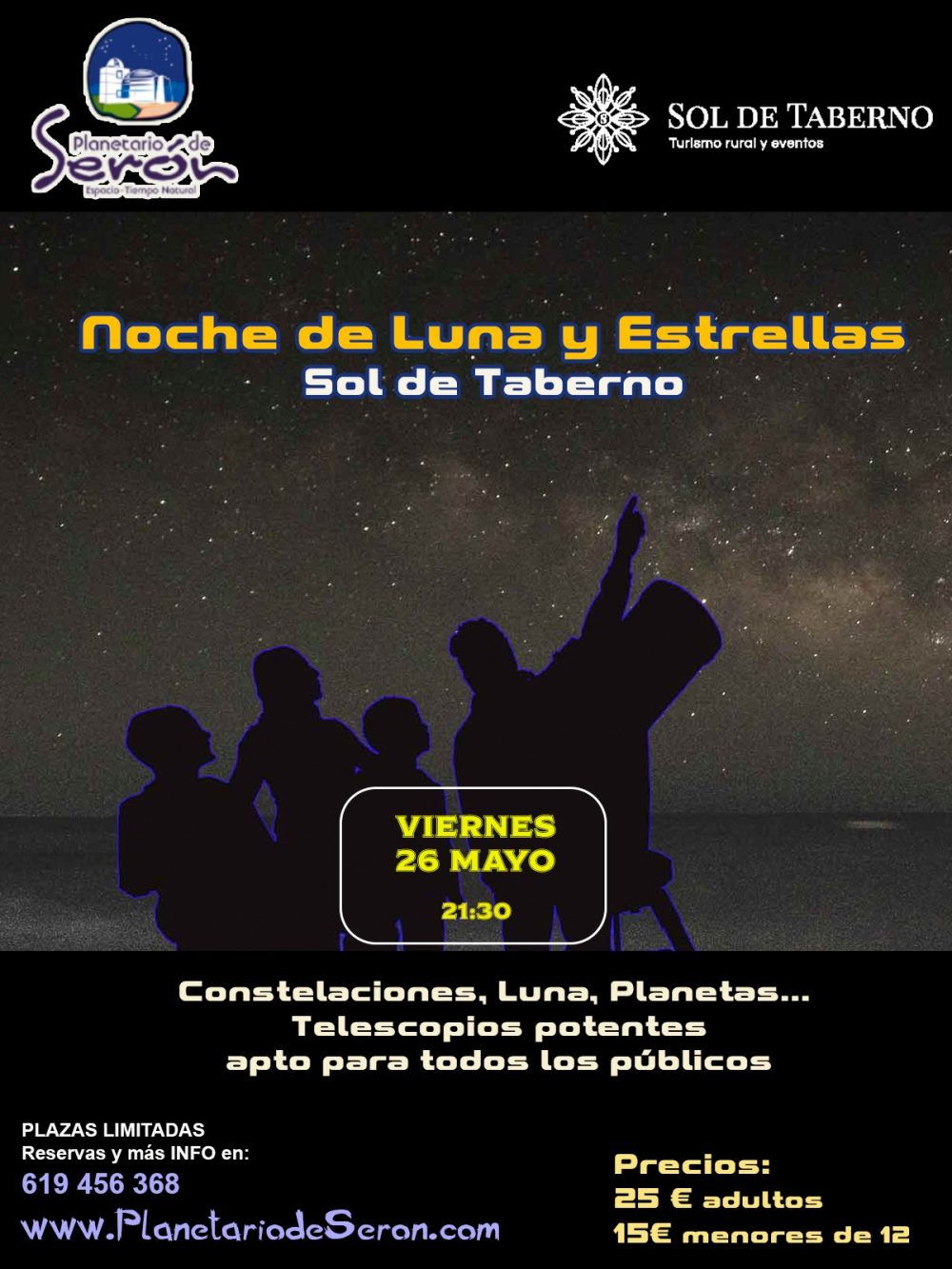 ¡El Planetario de Serón y el Restaurante Sol de Taberno te ofrecen una velada única el 26 de mayo!