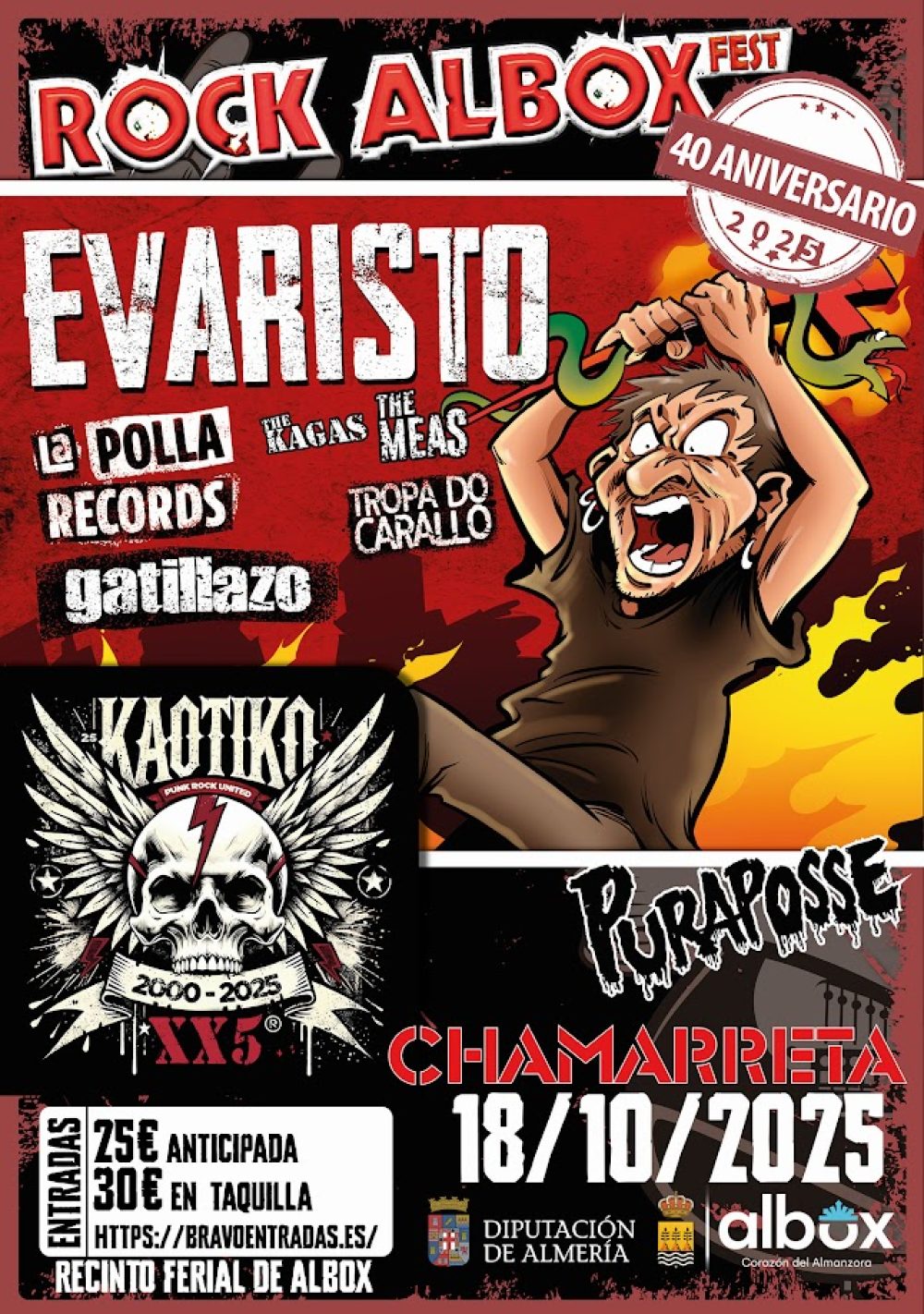 KAOTIKO: ¡Puro fuego y energía desde Agurain! Vienen celebrando su 25 aniversario sobre los escenarios, una apisonadora de punk rock que no te dará ni un respiro.