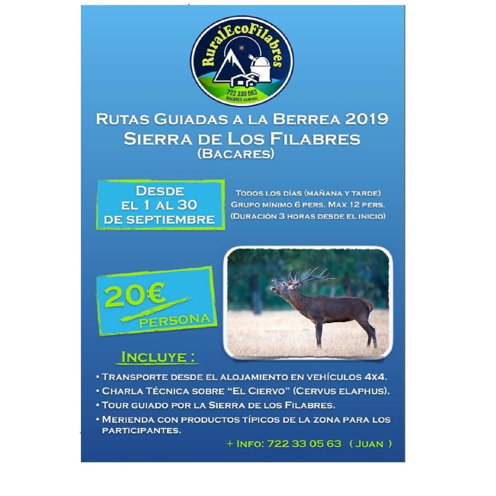 Desde el 1 al 30 de septiembre 2019 puedes contratar una ruta guiada a la Berrea en la Sierra de los Filabres (Bacares). Grupo mínimo 6 personas. Incluye desplazamiento en vehículo 4×4.