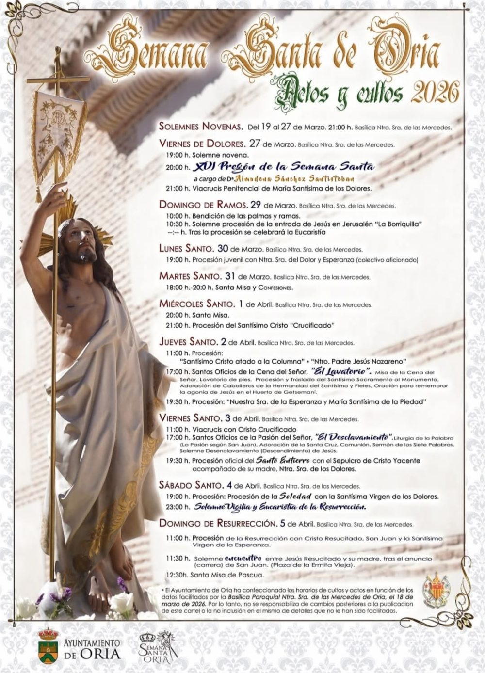 La Semana Santa de Oria de 2026 ya tiene programación.