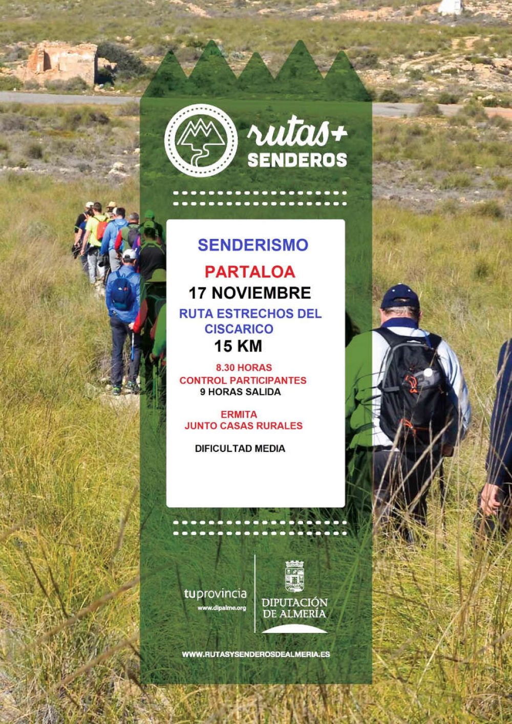 • NOTA: El desplazamiento hasta el municipio donde se celebre la jornada de senderismo, correrá a cargo del participante. En casos excepcionales, la organización podría poner autobús para desplazarse al municipio donde debe celebrarse la jornada de senderismo.  En esta ruta se establece una linea desde  Almería con salida en el parking de la bola azul a las 7:00 h.