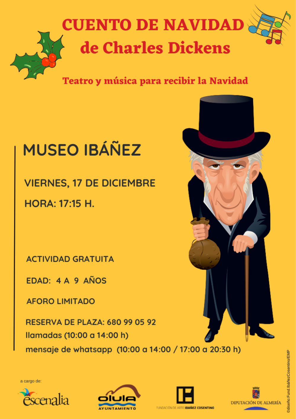 Aforo limitado, por lo que es obligatorio la RESERVA de plaza en el 680 99 05 92, llamadas (de 10:00 a 14:00 h) o a través de mensaje de whatsapp (de 10:00 a 14:00 h / 17:00 a 20:30 h) (solo se aceptarán reservas de plazas por medio de este teléfono)