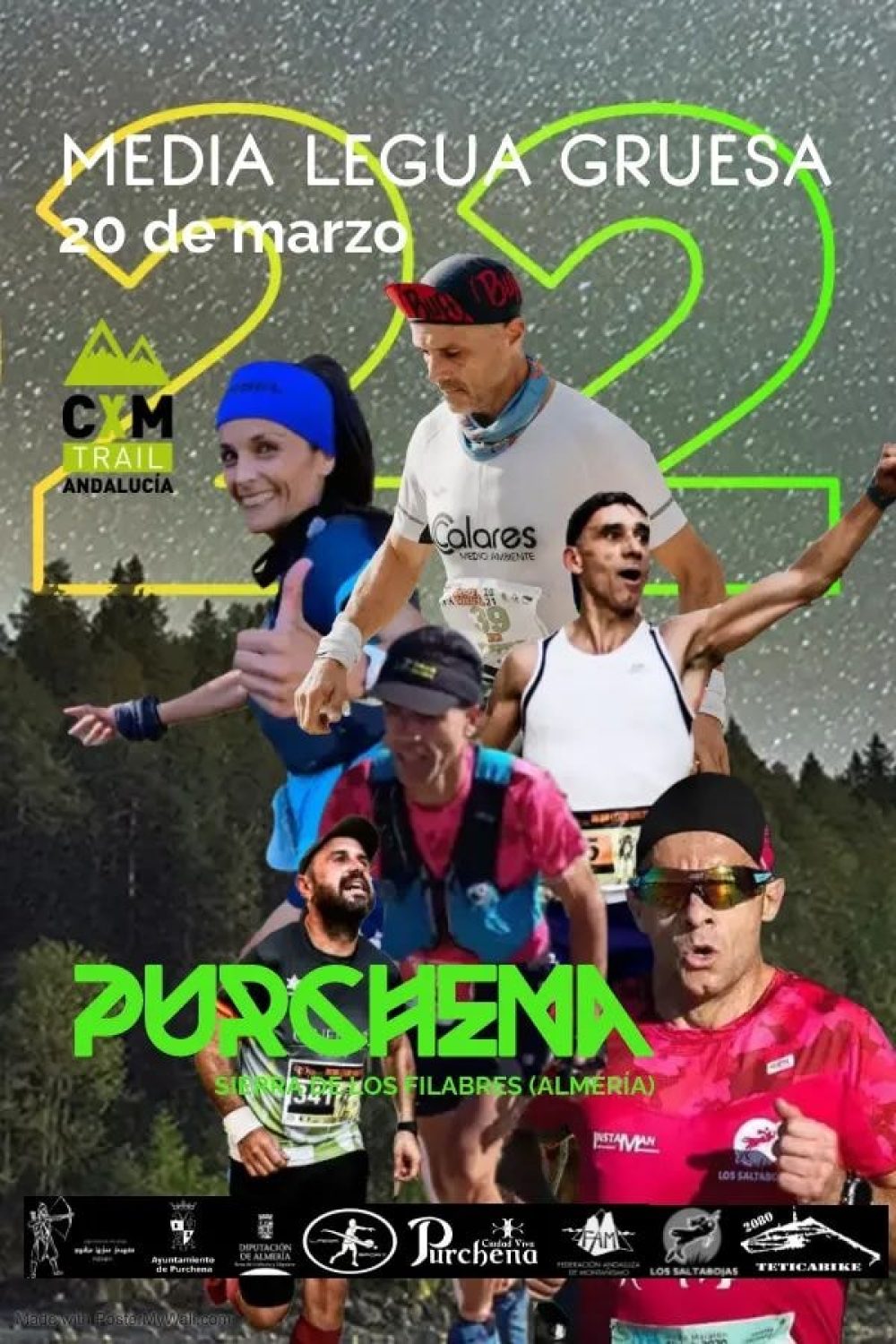 El Trail Media Legua Gruesa Purchena esta organizado por el Ayuntamiento de Purchena y se celebrará el 20 de marzo de 2022.