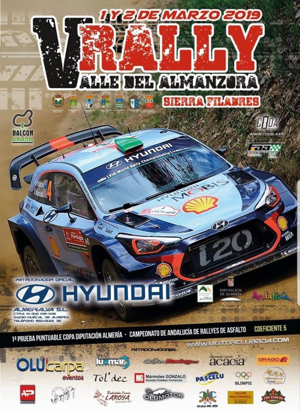 1 y 2 marzo 2019. 1ª prueba puntuable para la copa de Diputación de Almeria. Campeonato de Andalucia de Rallyes de Asfalto. Categoria 5.