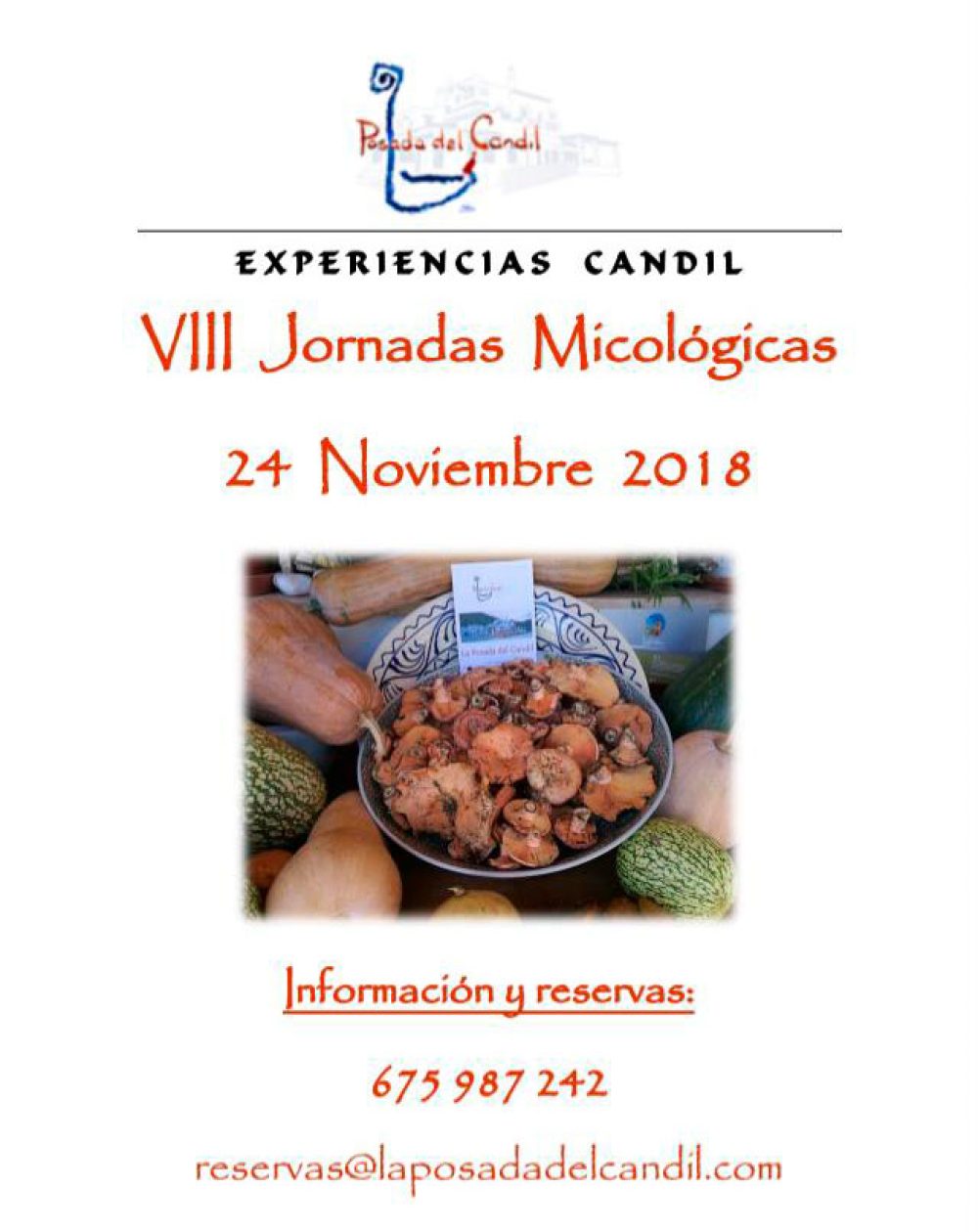 16.00h Vuelta a la Posada. Reconocimiento de setas, aclaración de dudas. Café, infusiones
