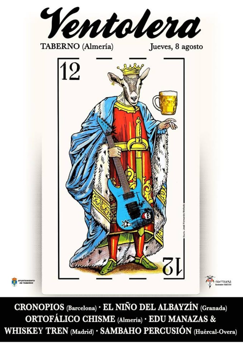 Jueves 8 agosto 2019. XII Edición del Festival «Ventolera» en Taberno (Almería). Actuación de: Cronopios (Barcelona), El Niño del Albayzín (Granada), Ortofálico Chisme (Almería), Edu Manazas & Whiskey Tren (Madrid), Sambaho Percusión (Huercal-Overa).