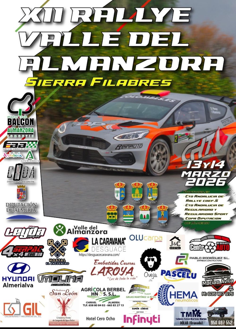 Ya tenemos los patrocinadores, os presentamos el cartel de la 12 Edición del Rallye Valle del Almanzora/Sierra Filabres