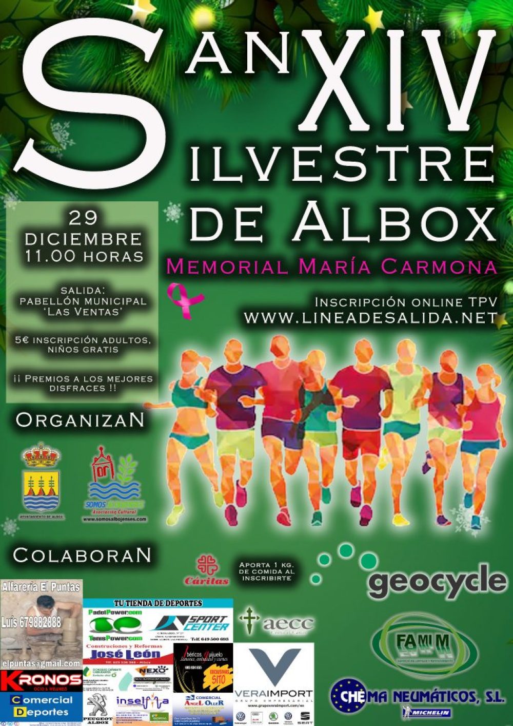 La Asociación Cultural Somos Albojenses y el Excmo Ayto de Albox organizan la XIV San Silvestre Albojense. La prueba se celebrará el próximo Domingo 29 de Diciembre de 2019 desde las 11:00 horas. La salida estará ubicada en el Pabellón Municipal de Deportes de Albox. Dirección: Avd Lepanto, s/n.