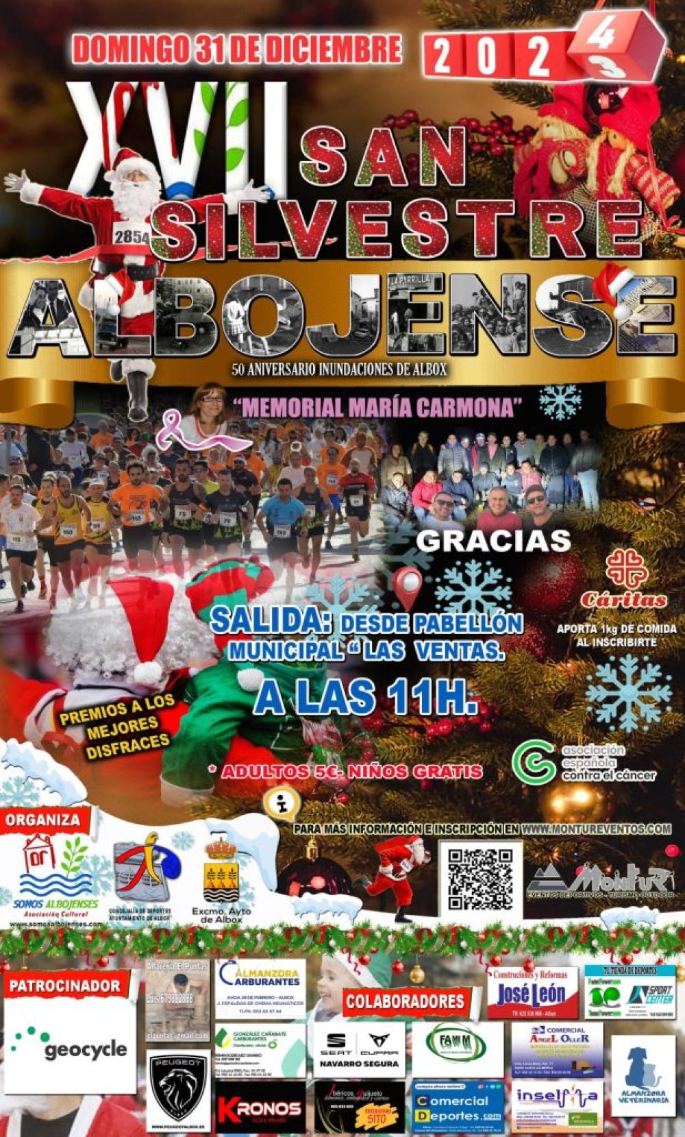 El 31 de diciembre de 2023 a partir de las 11:00h tendrá lugar la salida de la XVII San Silvestre Albojense desde el Pabellón Municipal de Deportes de Albox.