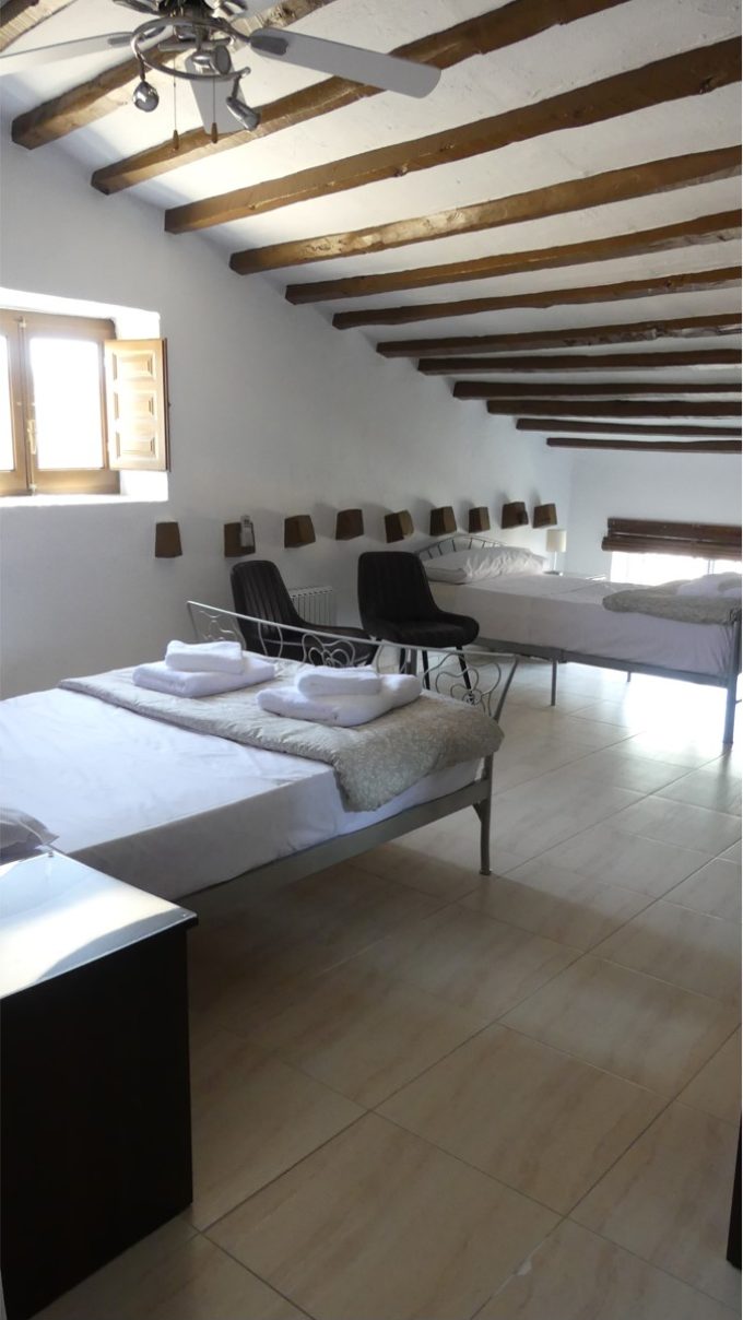 - Habitación triple con una cama doble y una cama individual.