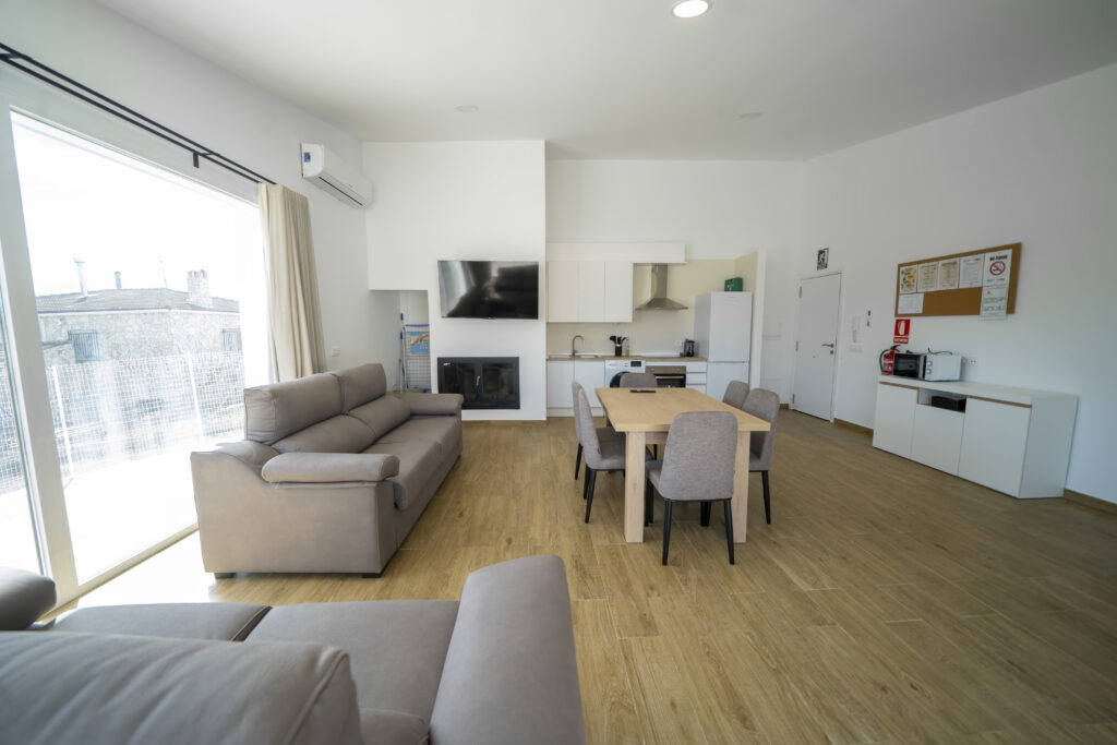 • Zona de estar: Un ambiente cálido y luminoso que cuenta con una acogedora chimenea, ideal para relajarse.