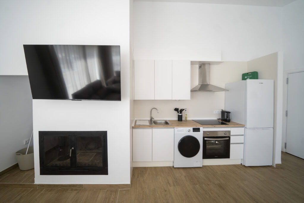• Cocina bien equipada: Espacio preparado con todo lo necesario para facilitar tu día a día, incluyendo horno, microondas, nevera, cafetera, lavadora y placa de cocina.