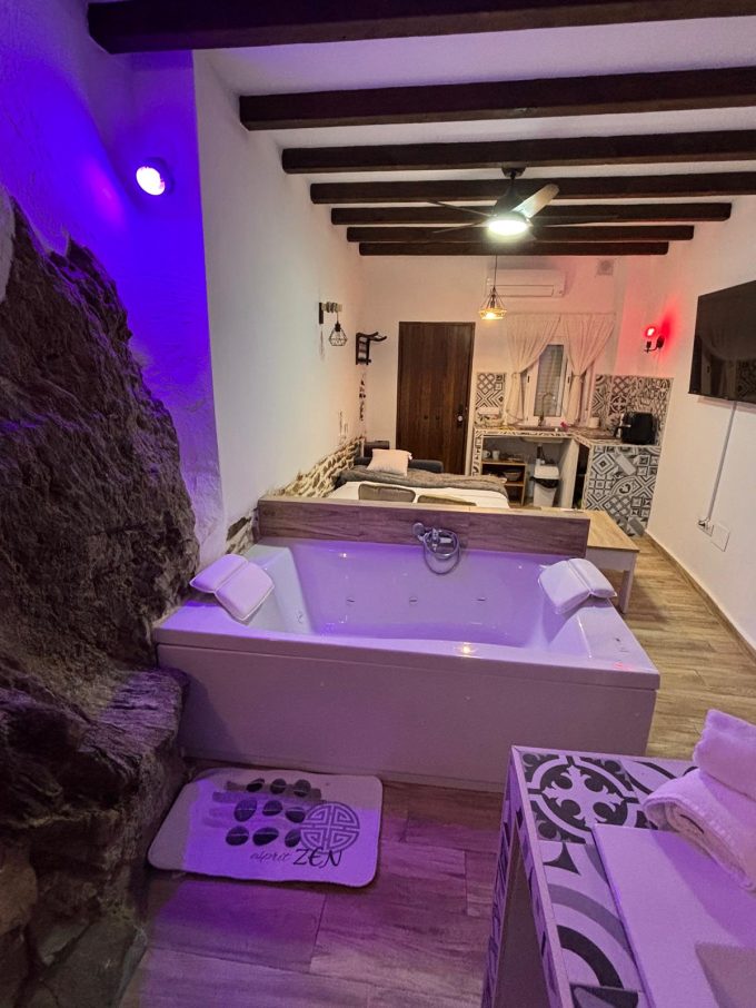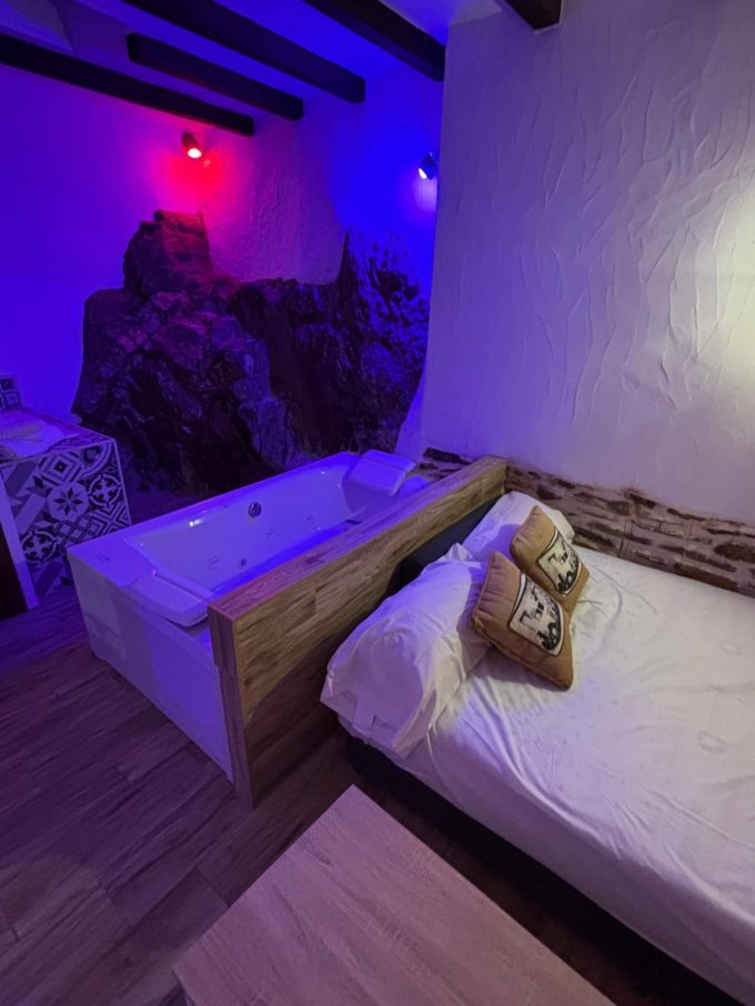 • Jacuzzi cuadrado para dos personas integrado en la estancia.