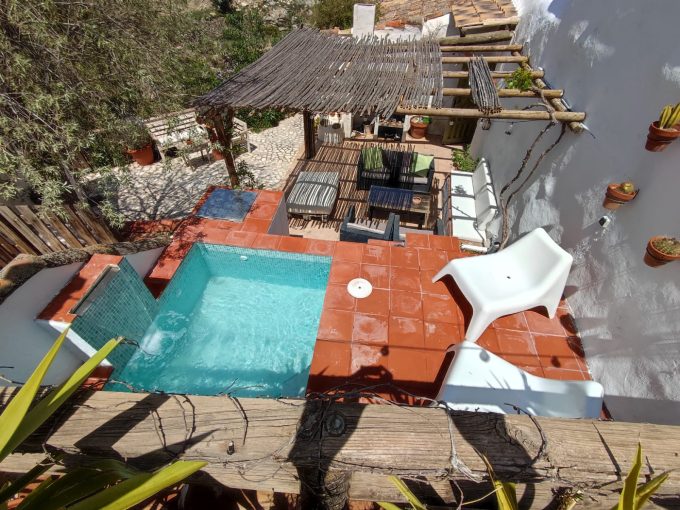 El cortijo, construido en el año 1900 está compuesto de un salón comedor con chimenea, cocina con todo lo necesario y unas magnificas vistas, un cuarto de baño, tres dormitorios y un estupendo solarium. Está rodeado de una parcela de unos 1000 metros cuadrados en forma de terrazas con diversos arboles frutales y de sombra. Pueden aparcar 4 coches.